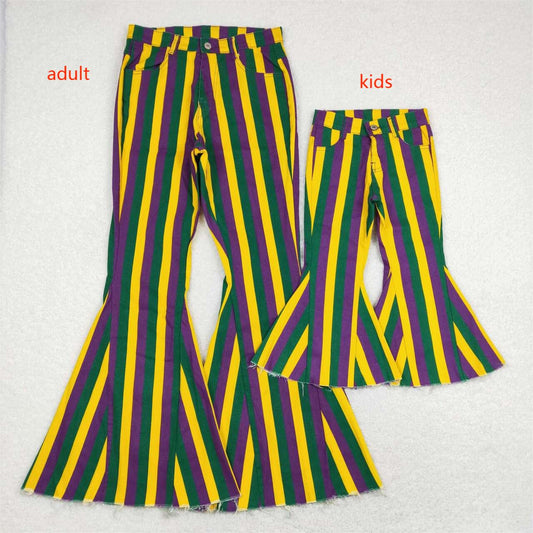 Mommy&Me Baby Girls Blue Stripes Bell Flare Denim Pants