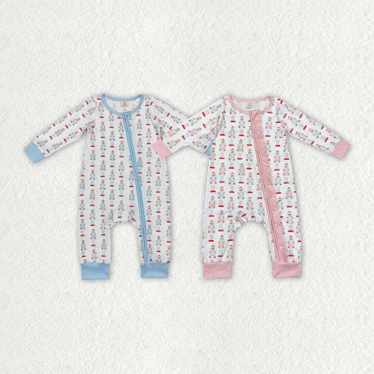 LR1185 Baby Infant Girls Pink Christmas Soldier Zip Bamboo Rompers