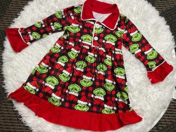 6 A1-28 Christmas Character Girls Plaid Nightgown Dress