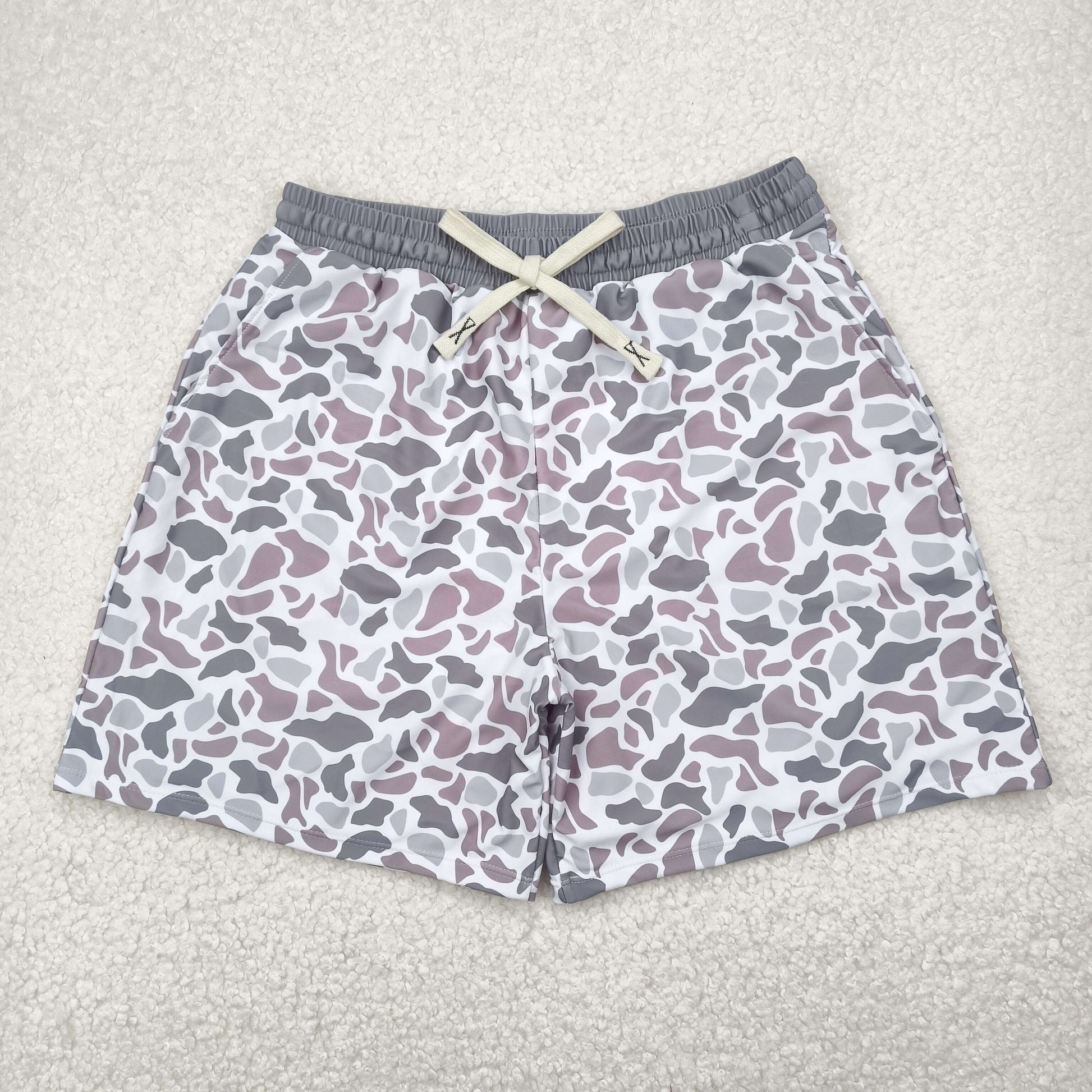 S0403 Adult Man Grey Camo Bottom Trunk Drawstrings Shorts Swimwear 5.5