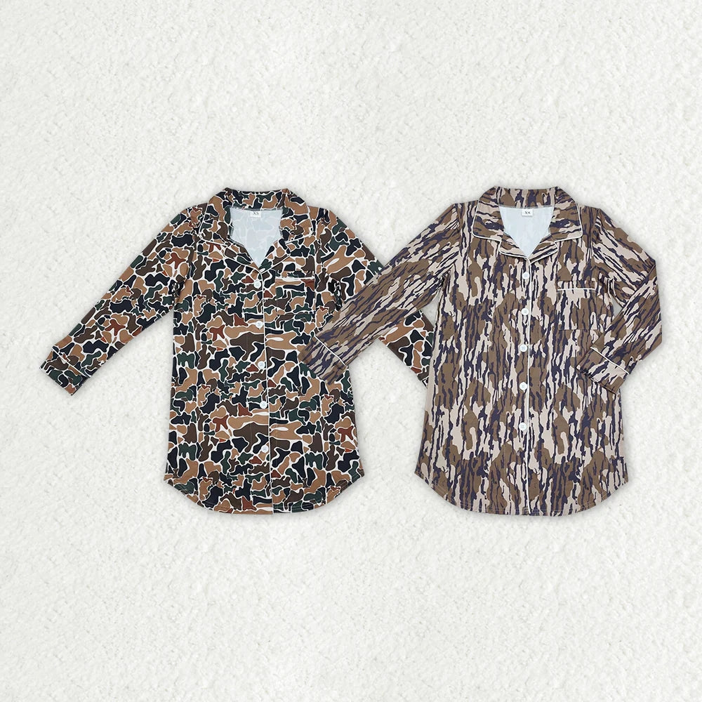 Adult Women Camo Fall Buttons Tops Pajamas Lounge Wear