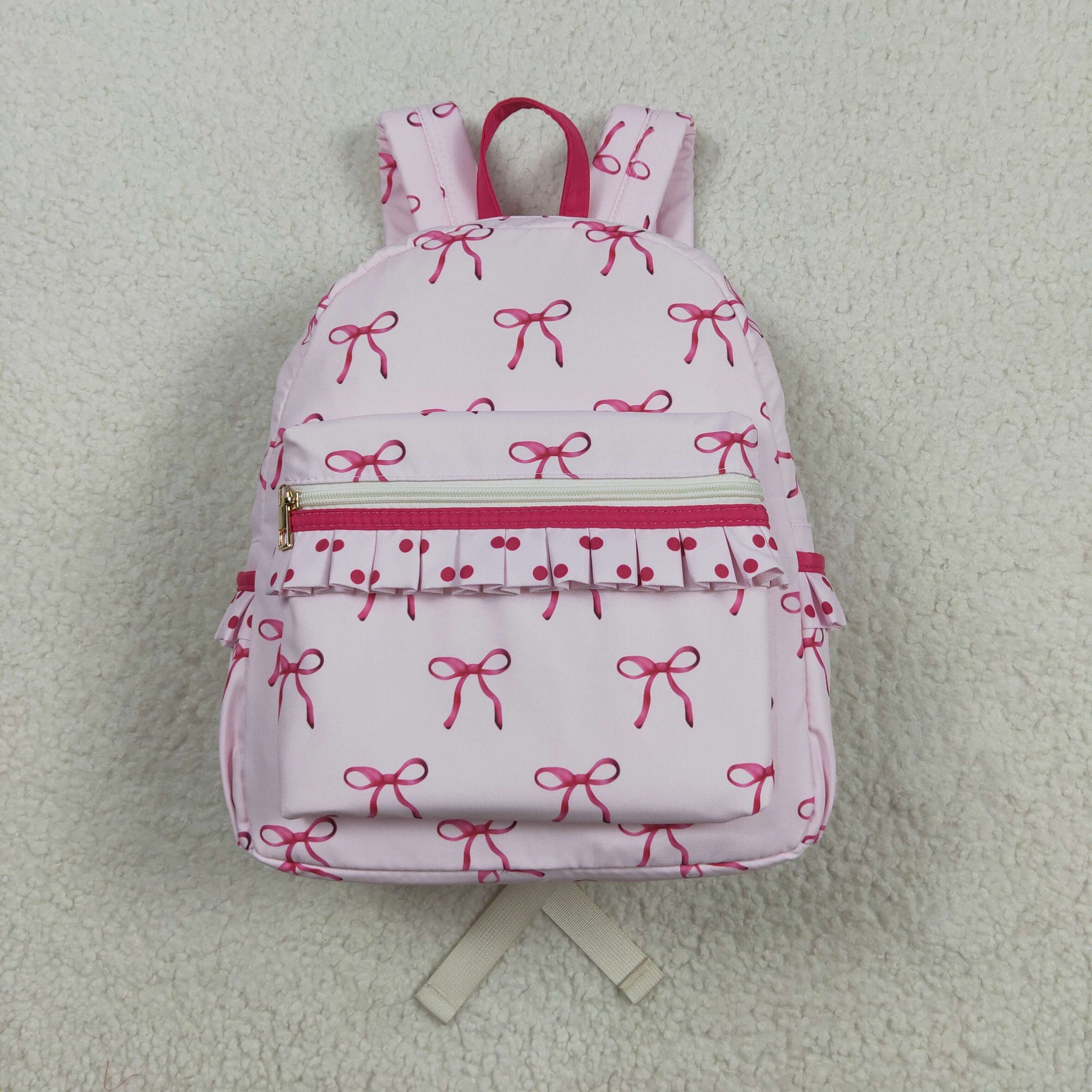 BA0233 Baby Kids Girls Pink Bows Backpack Zip Back Bag