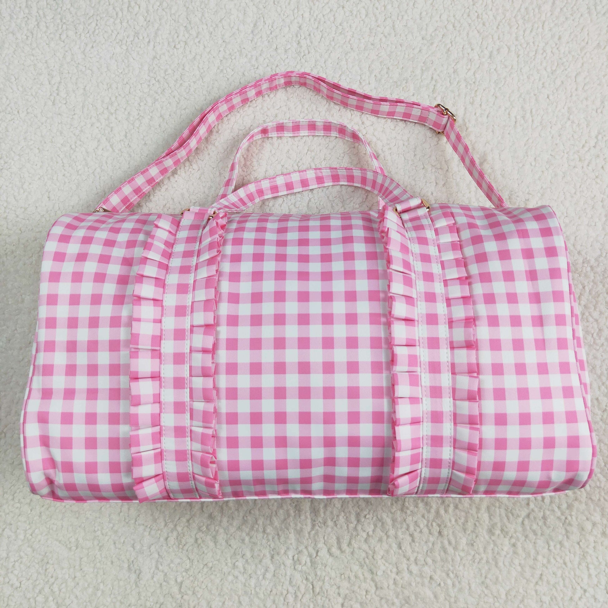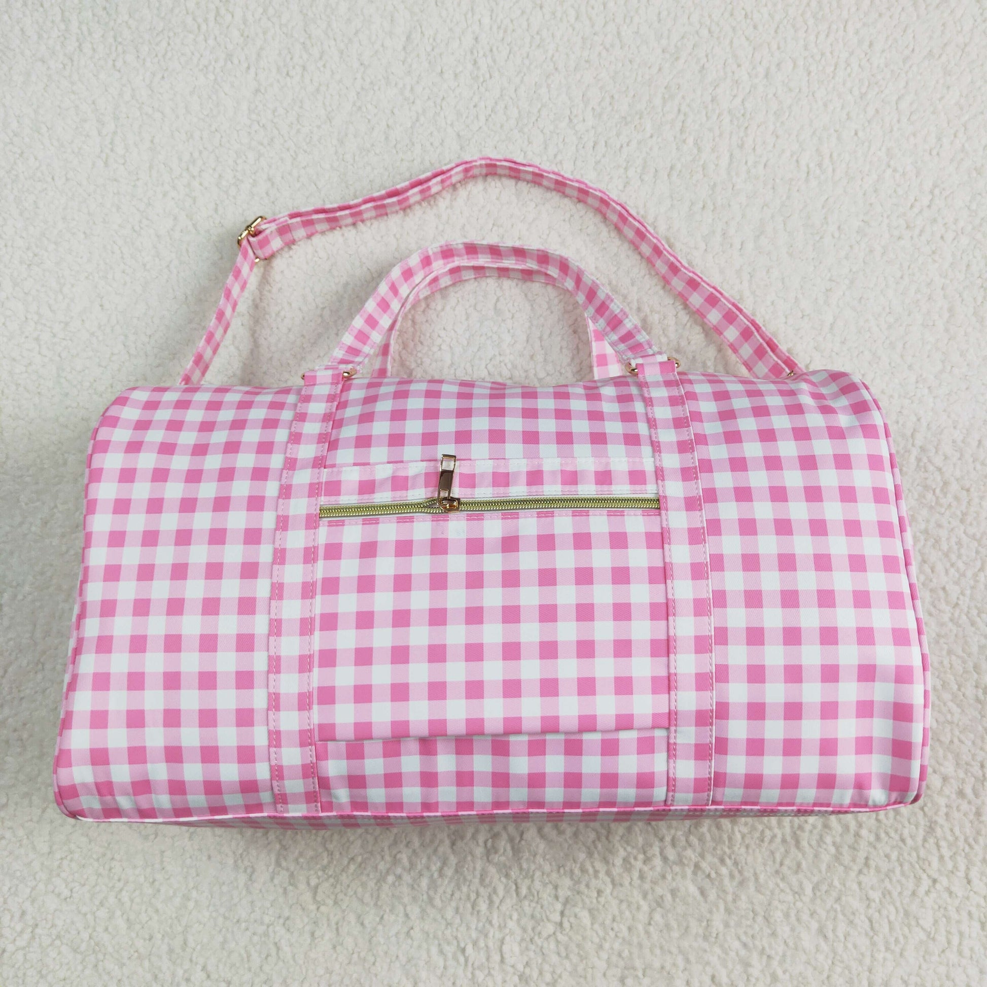BA0302 Pink Checkered Print Gym Duffle Bags 5.5