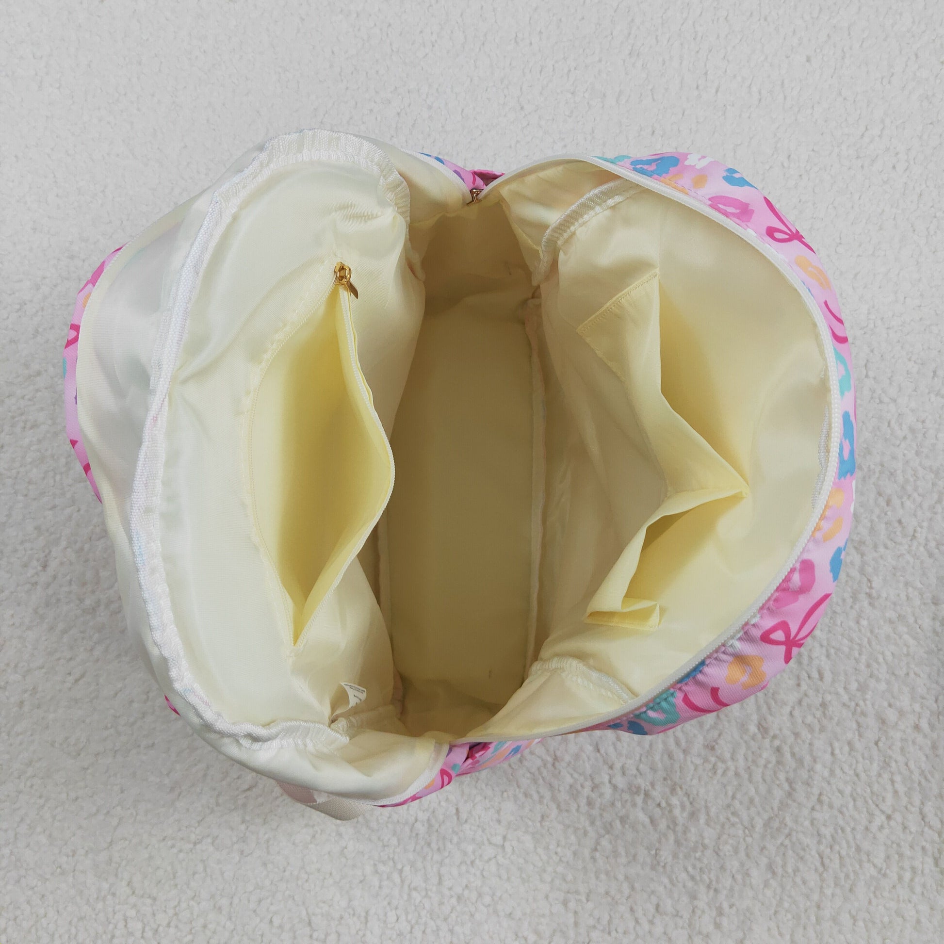 BA0319 Baby Kids Pink Leopard Bows School Zipper Ruffle Back Bags 8.4