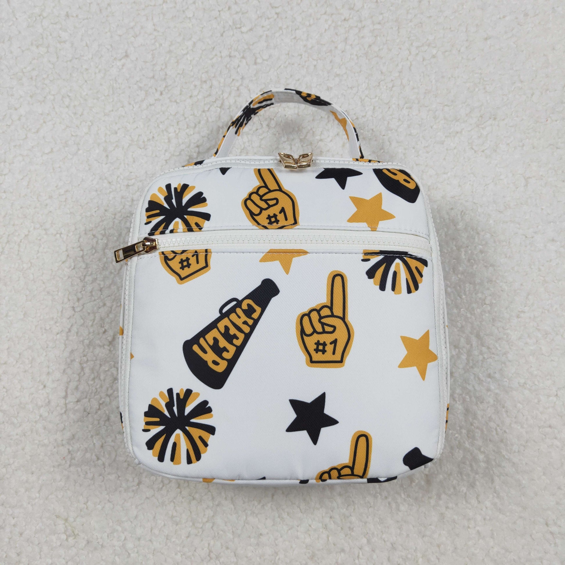 BA0362 Baby Kids Team Black Gold Cheer Fireworks Zipper School Lunch Boxes C10.20