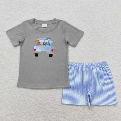 Baby Boys Dog Fishing Sibling Rompers Clothes Sets