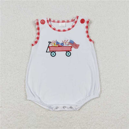 Baby Girls 4th Of July Flag Tractor Sibling Rompers Clothes Sets