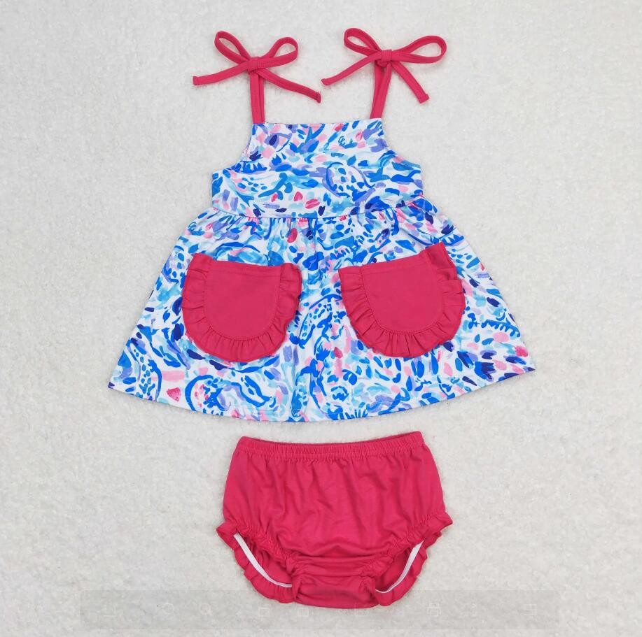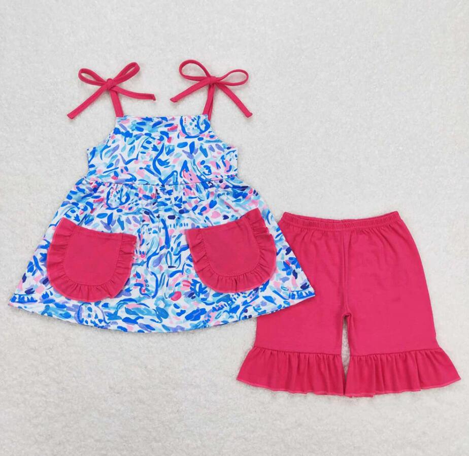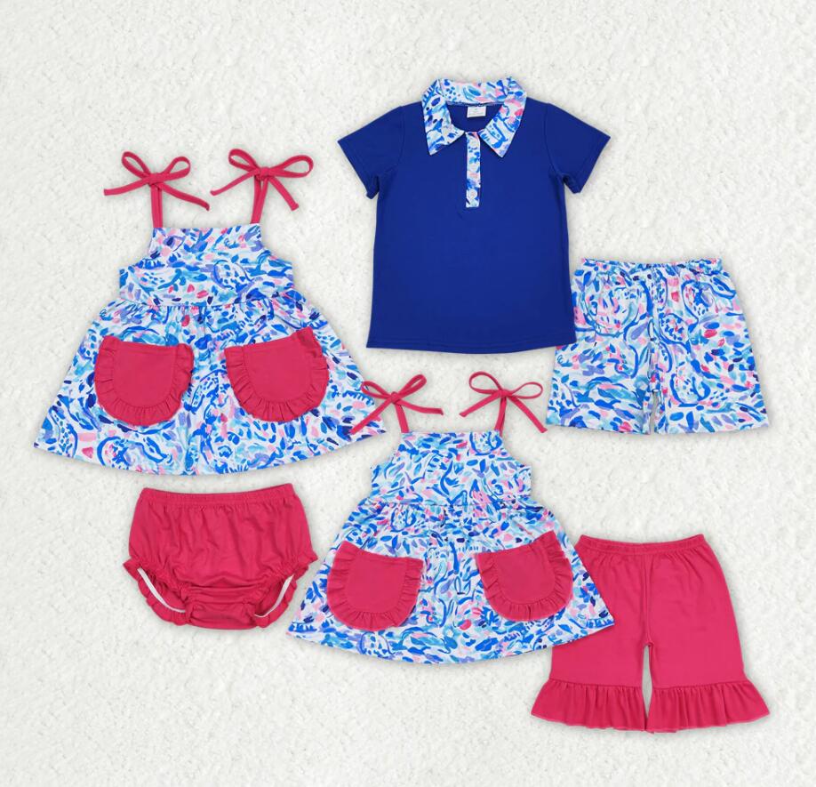 Baby Girls Blue Grasses Summer Sibling Boys Shorts Clothes Sets