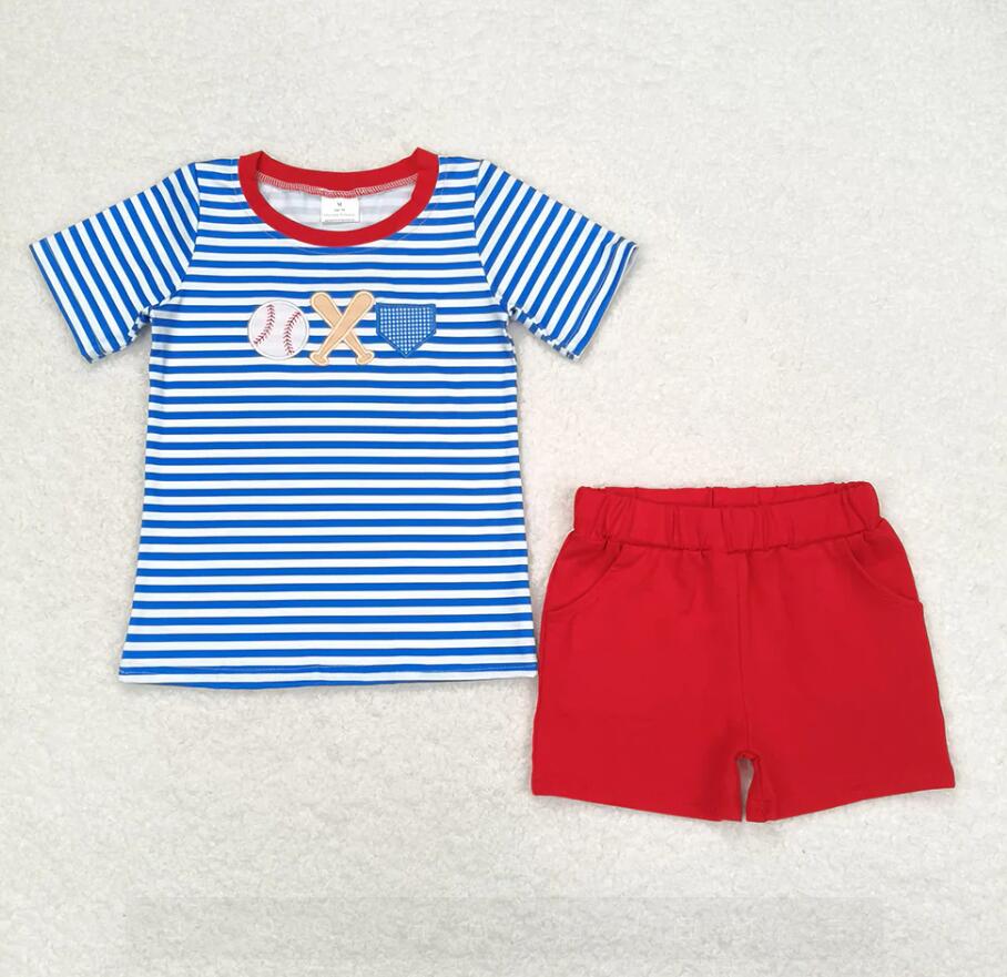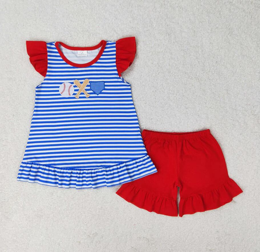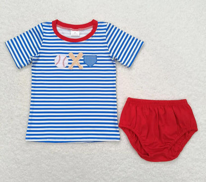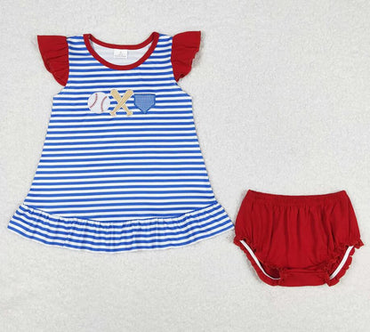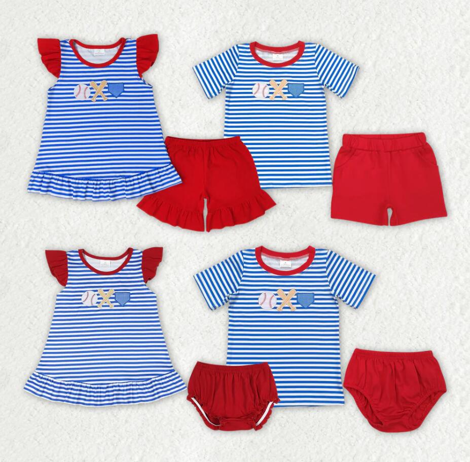 Baby Girls Blue Stripes Baseball Summer Sibling Clothes Sets