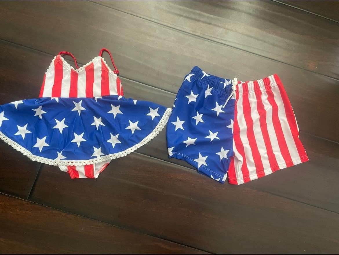 Baby Girls&Boys 4th of July Sibling National Day star-striped swimsuit swim trunks