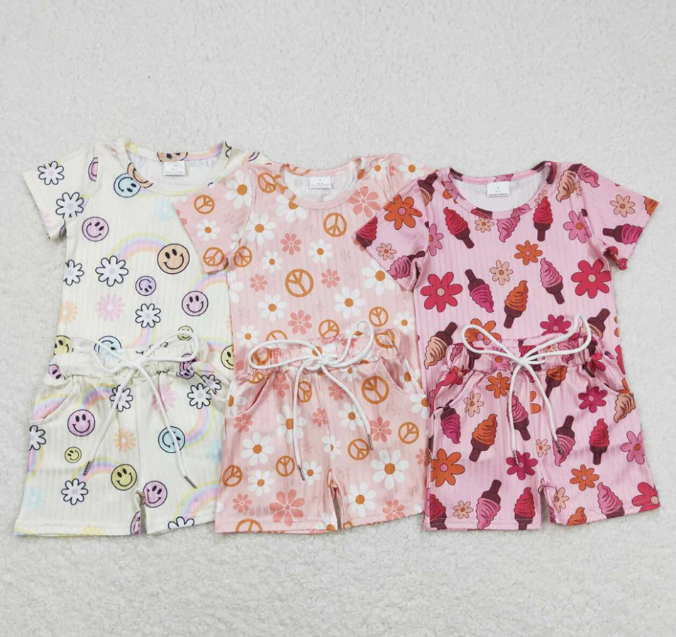 Baby Girls Flowers Short Sleeve Tee Shirts Summer Shorts Pajamas Clothes Sets