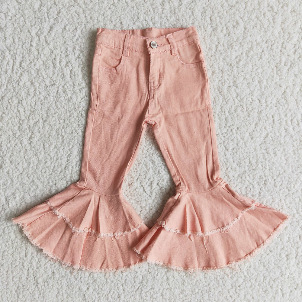 Baby Girls Jeans Solid Double Layer Flare Pants Bell Bottom
