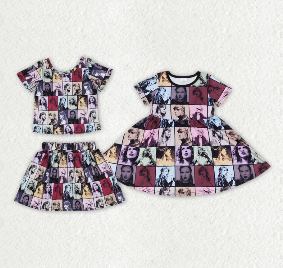 Baby Girls Short Sleeve Singer 1989 Sibling Sister Dresses Clothes Sets