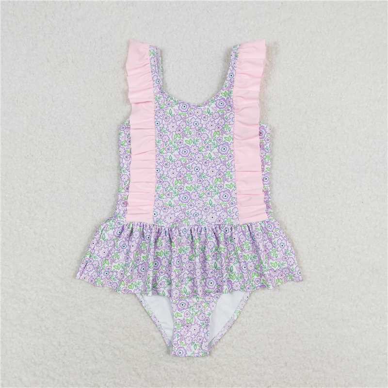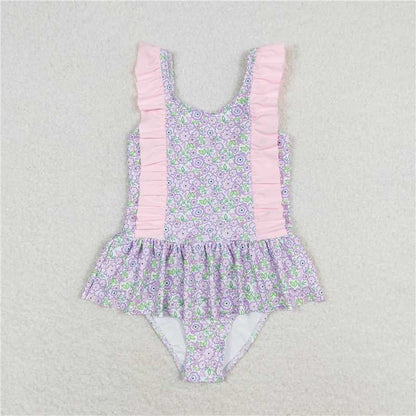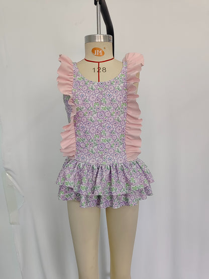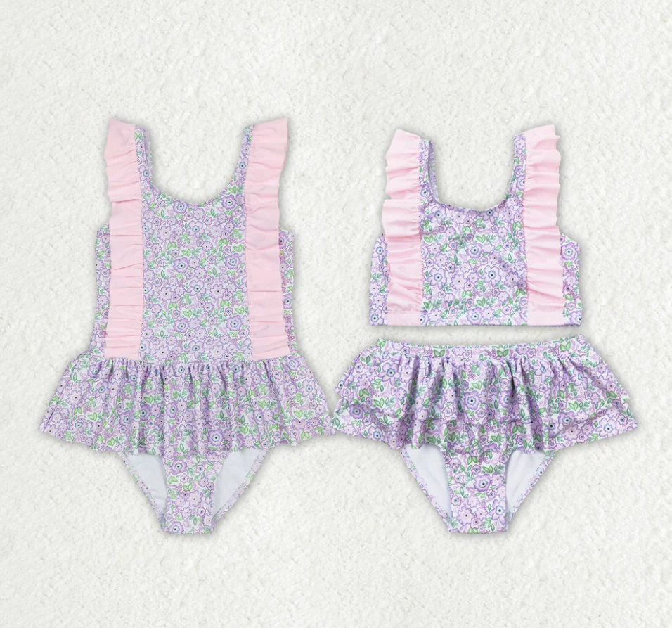 Baby Girls Summer Lavender Flowers Sibling Sister Swimsuits