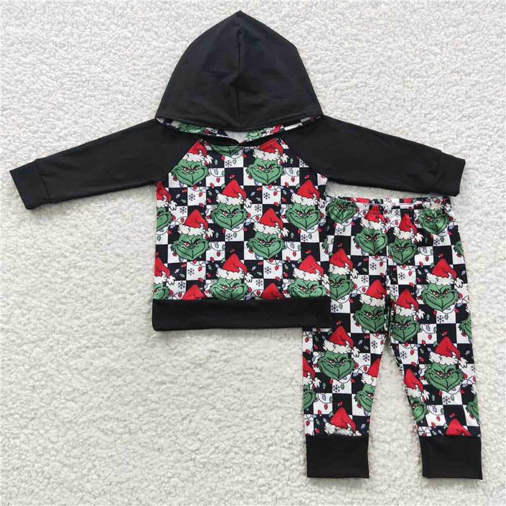 BLP0223 Black and white checkered black hooded long sleeve trousers