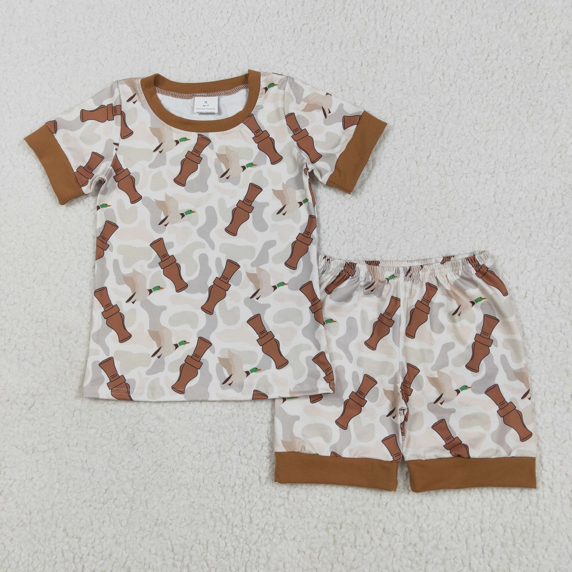 BSSO1324 Baby Boys Khaki Camo Ducks Calls Top Shorts Pajamas Set 5.15