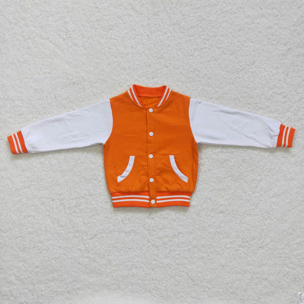 BT0268 Orange and White Striped Pocket Baseball Shirt Button Up Top