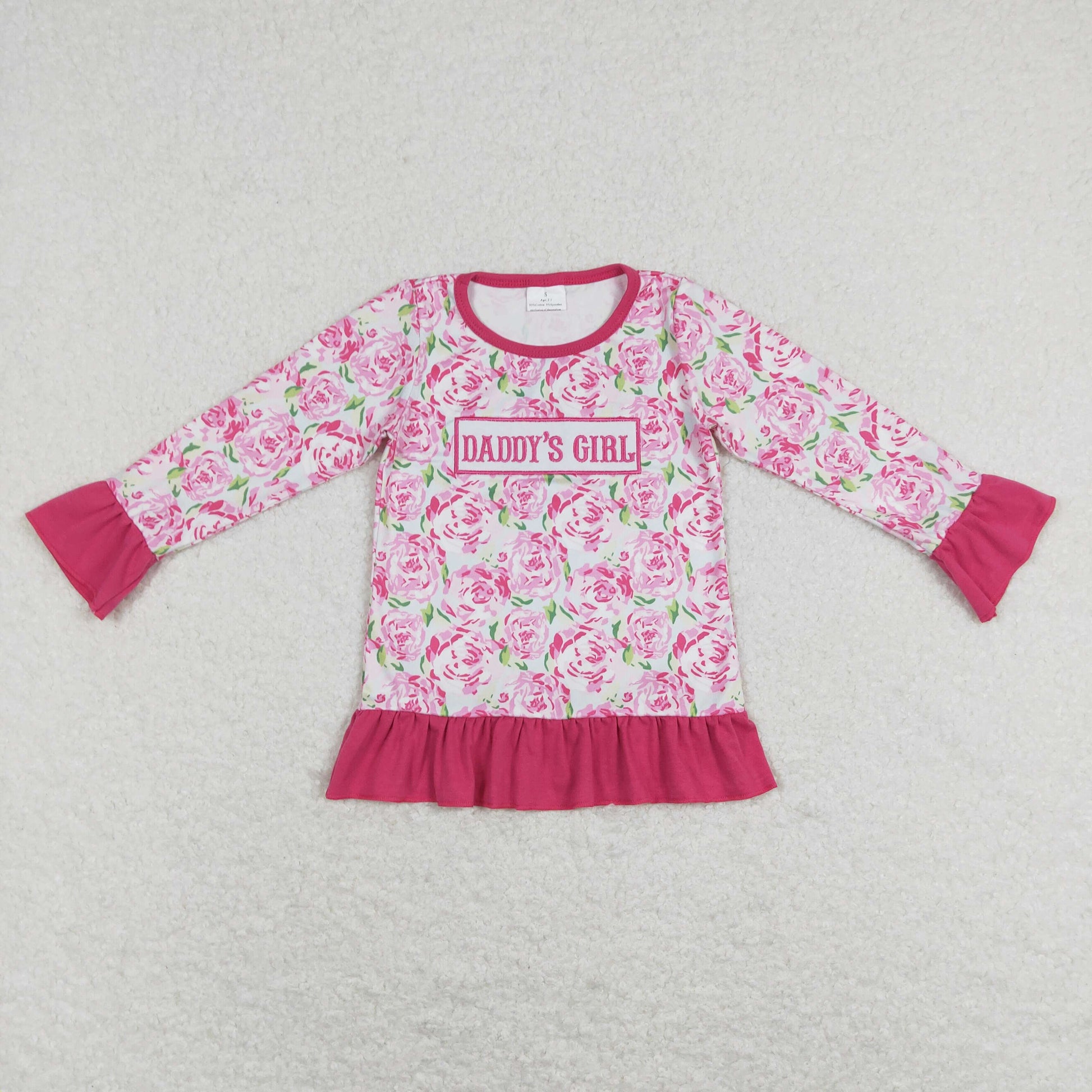 GT0402daddy's girl embroidered letter flower rose red long-sleeved top Valentine's Day