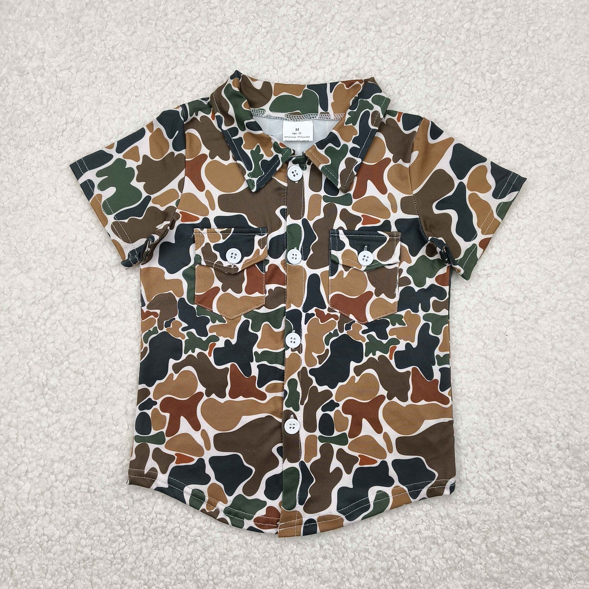 BT1200 Baby Boys Dark Brown Camo Short Sleeves Button Pockets Shirts Top