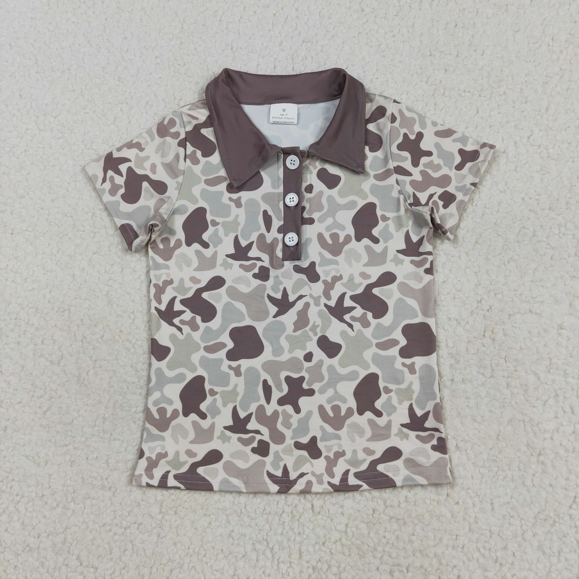 BT1261 Baby Boys Short Sleeves Khaki Ducks Camo Button Polo Shirts Top 7.22