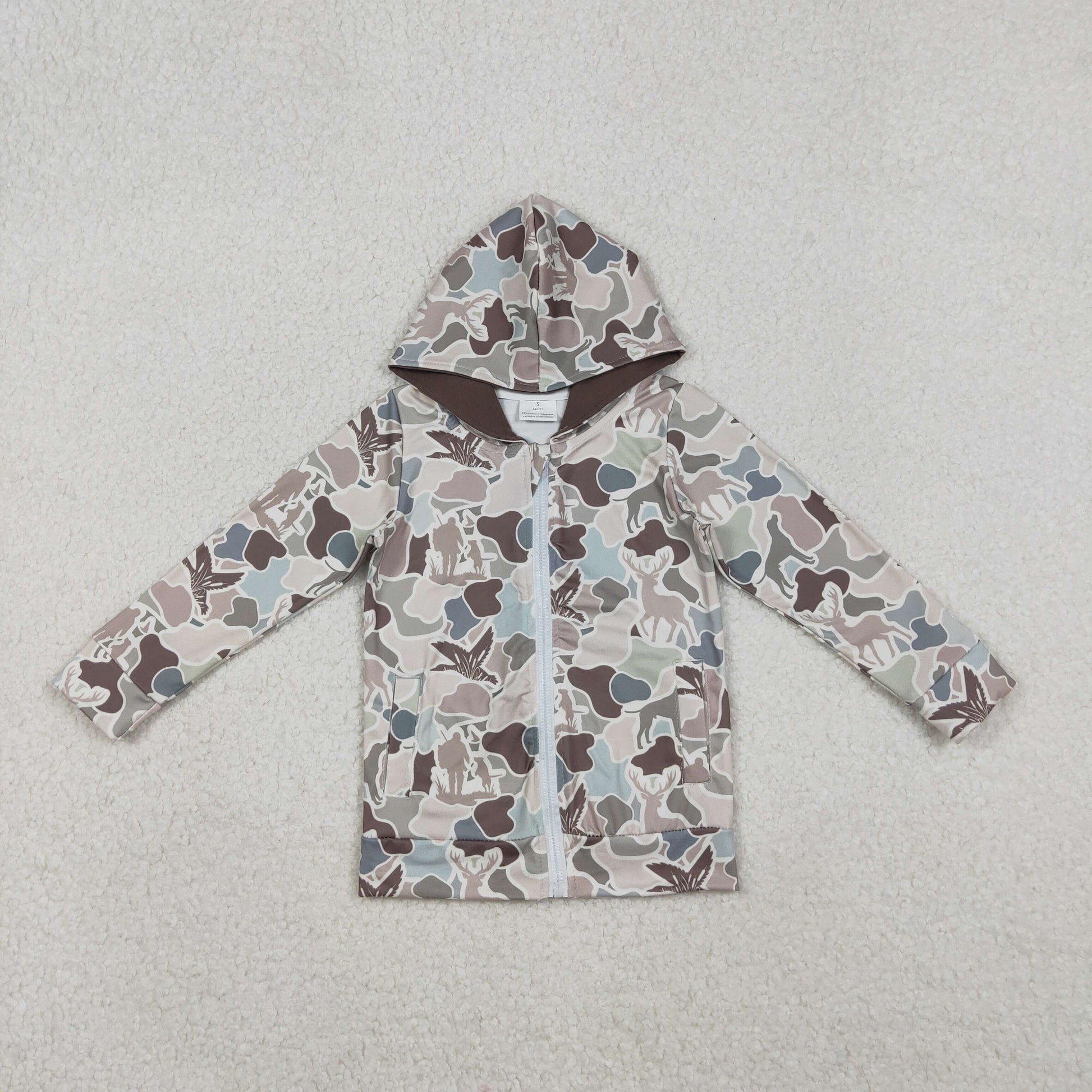 BT1390 Baby Boys Grey Dogs Deer Ducks Camo Pockets Zipper Hoodies Top C11.1