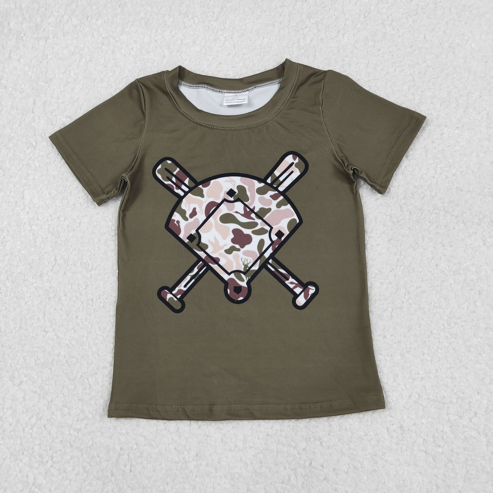 BT1424 Baby Boys Short Sleeve Dogs Ducks Deer Camo Baseballs Team T-shirts Top C12.4