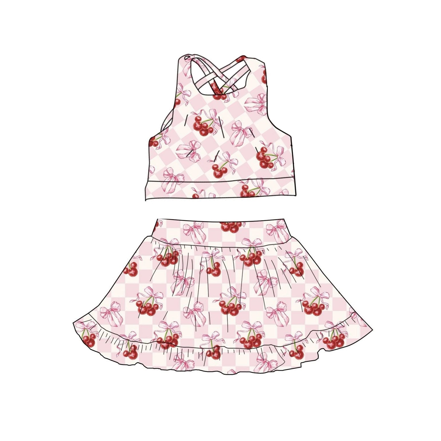 C12.5 GSD3379 Baby Girls Pink Checked Bow Cherry Vests Skirt Shorts Yoga Clothes Sets Preorder