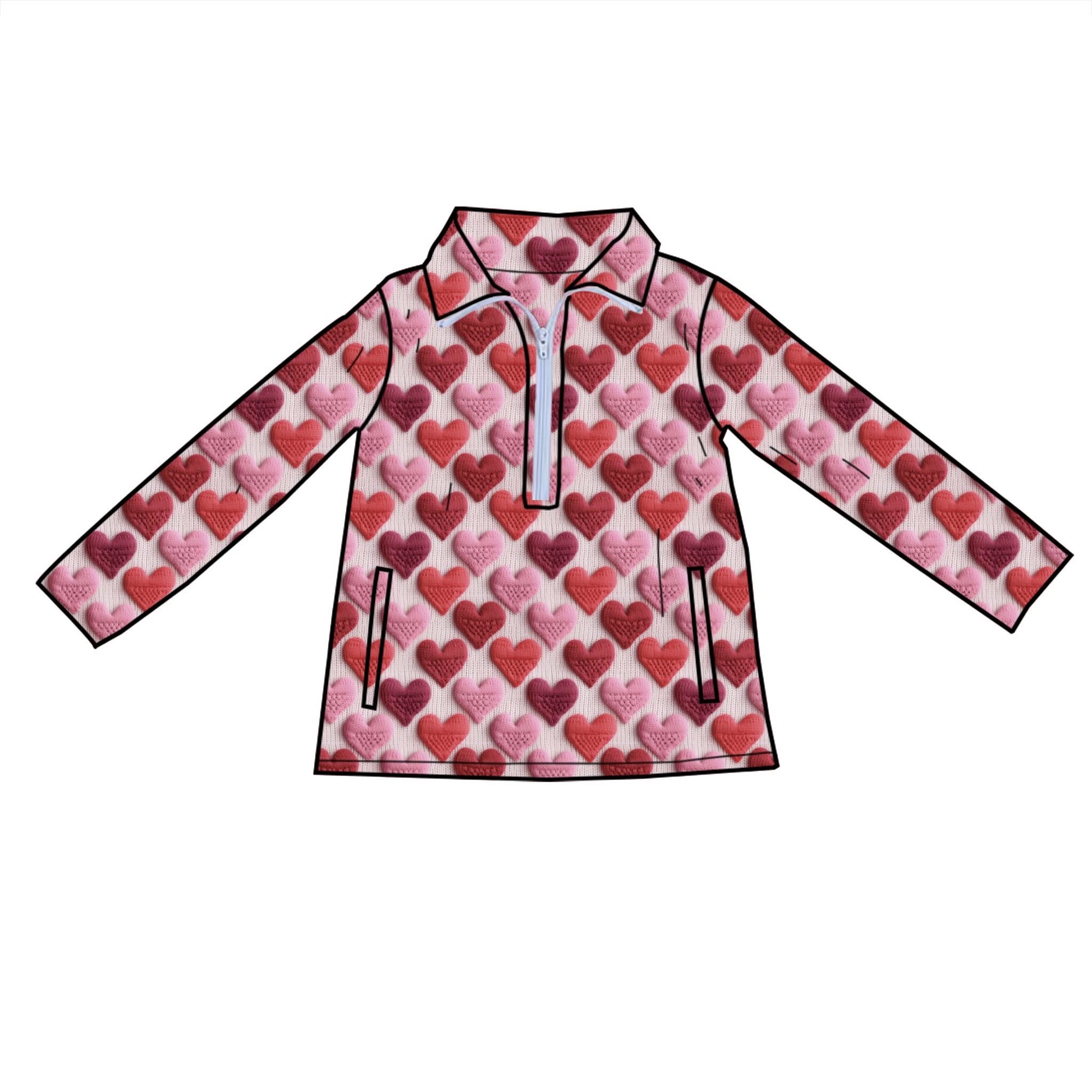 C12.5 GT1548 Baby Girls Long Sleeve Hearts Plaid Valentines Yoga Zipper Pockets Pullovers Top Preorder