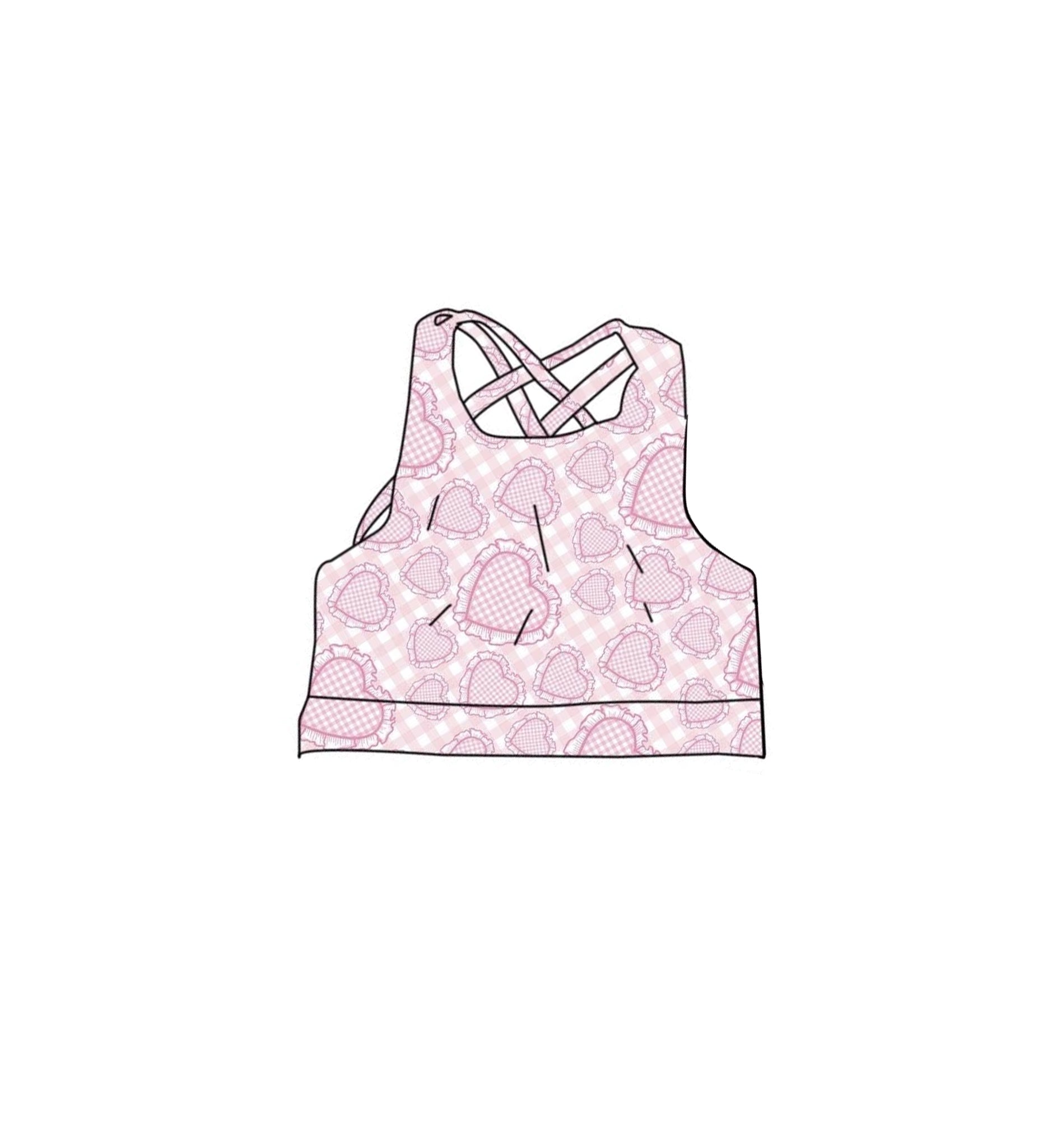 C12.5 GT1550 Baby Girls Strap Pink Checked Hearts Valentines Yoga Vests Top Preorder