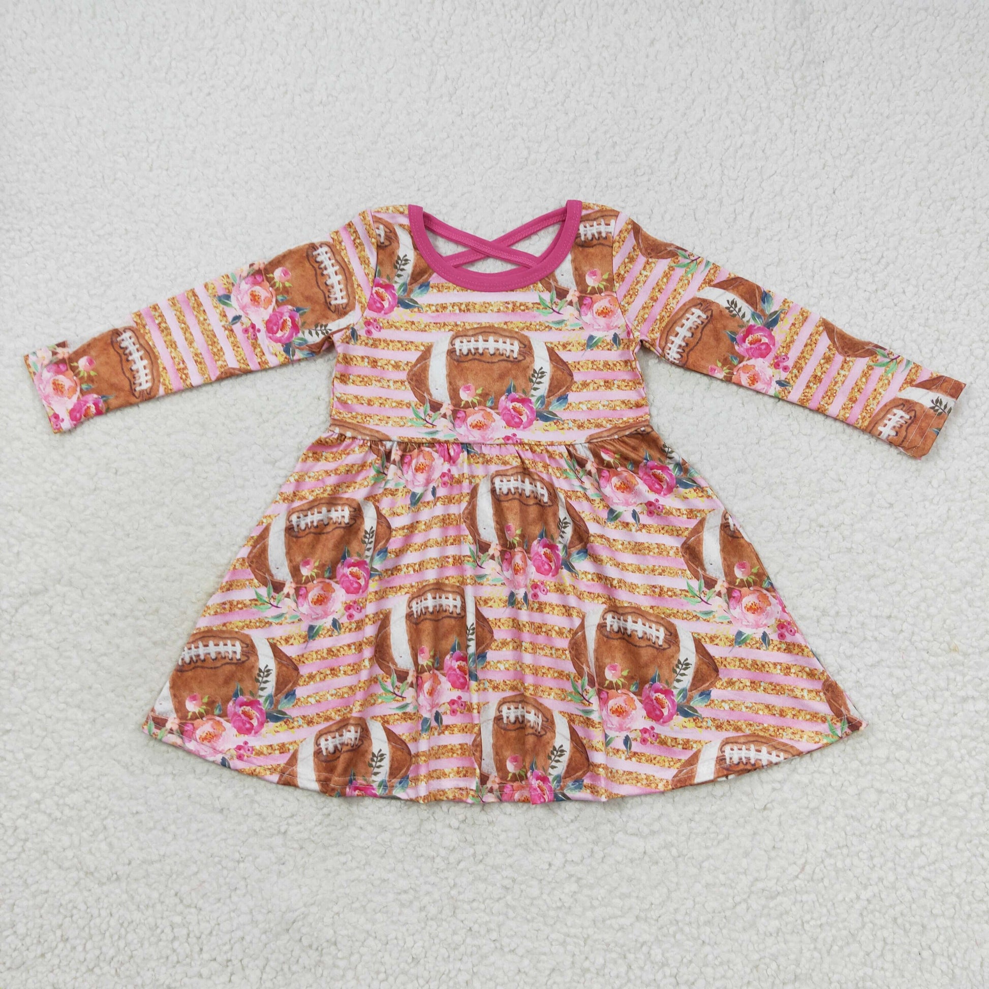 GLD0326 Baby Girls Pink Football Flowers Long Sleeve Dress