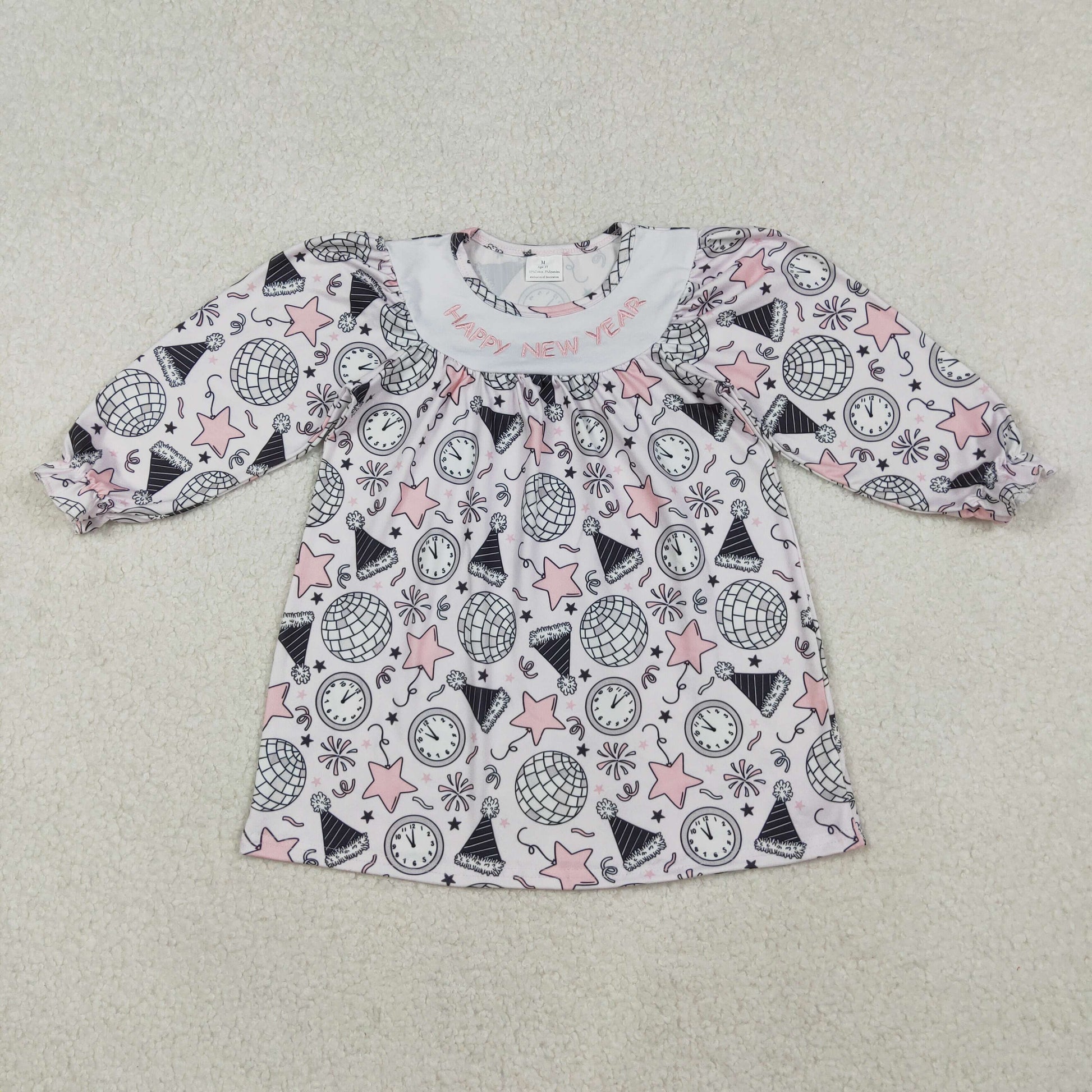 GLD1231 Baby Girls Long Ruffle Sleeves Happy New Year Knee length Dress C10.17