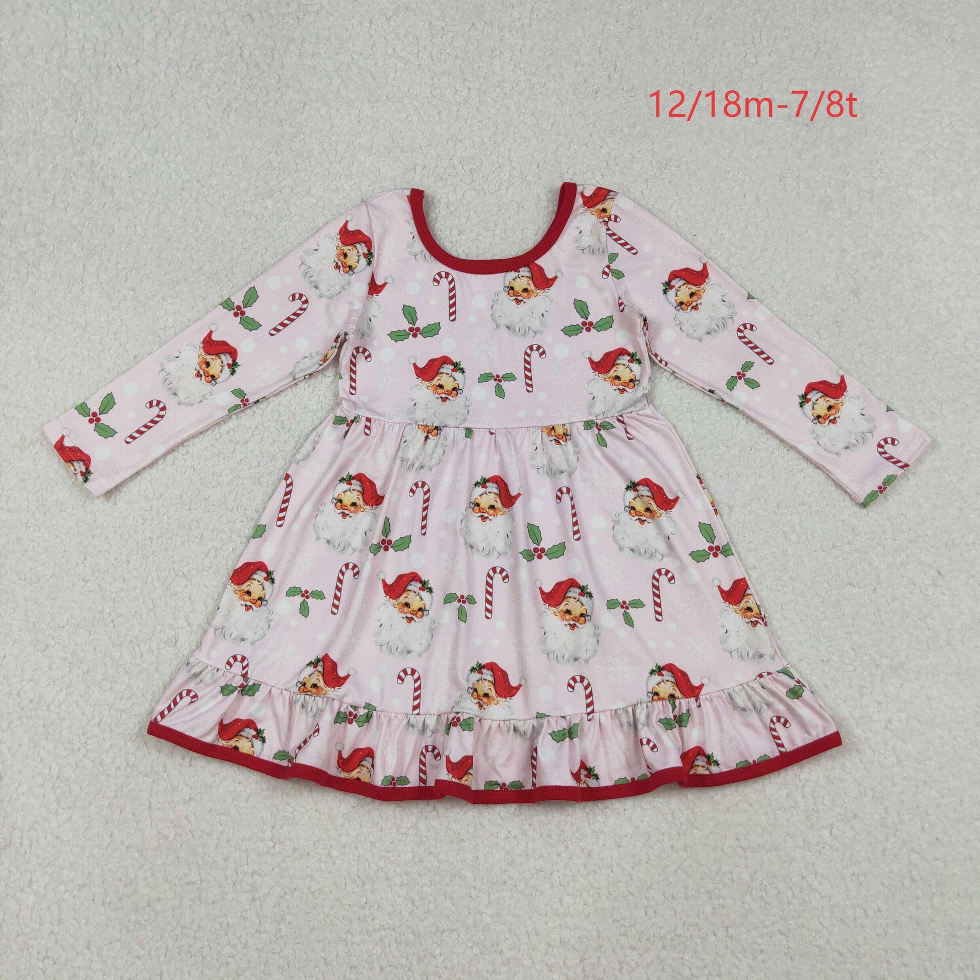 GLD1251 Baby Girls Santa Candy Cane Holly Christmas Ruffle Knee Length Dress C10.8