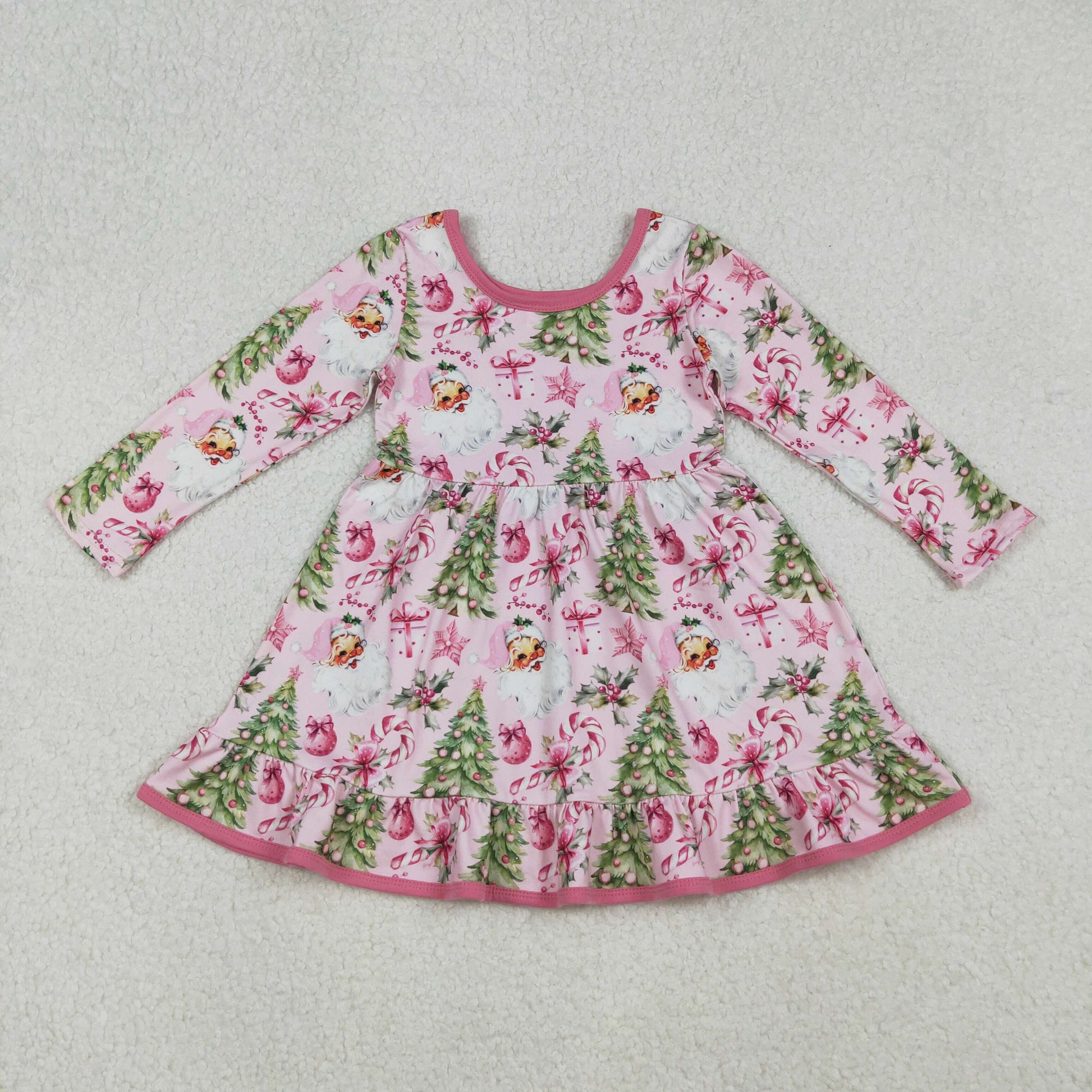 GLD1252 Baby Girls Santa Candy Cane Christmas Trees Ruffle Knee Length Dress C10.6