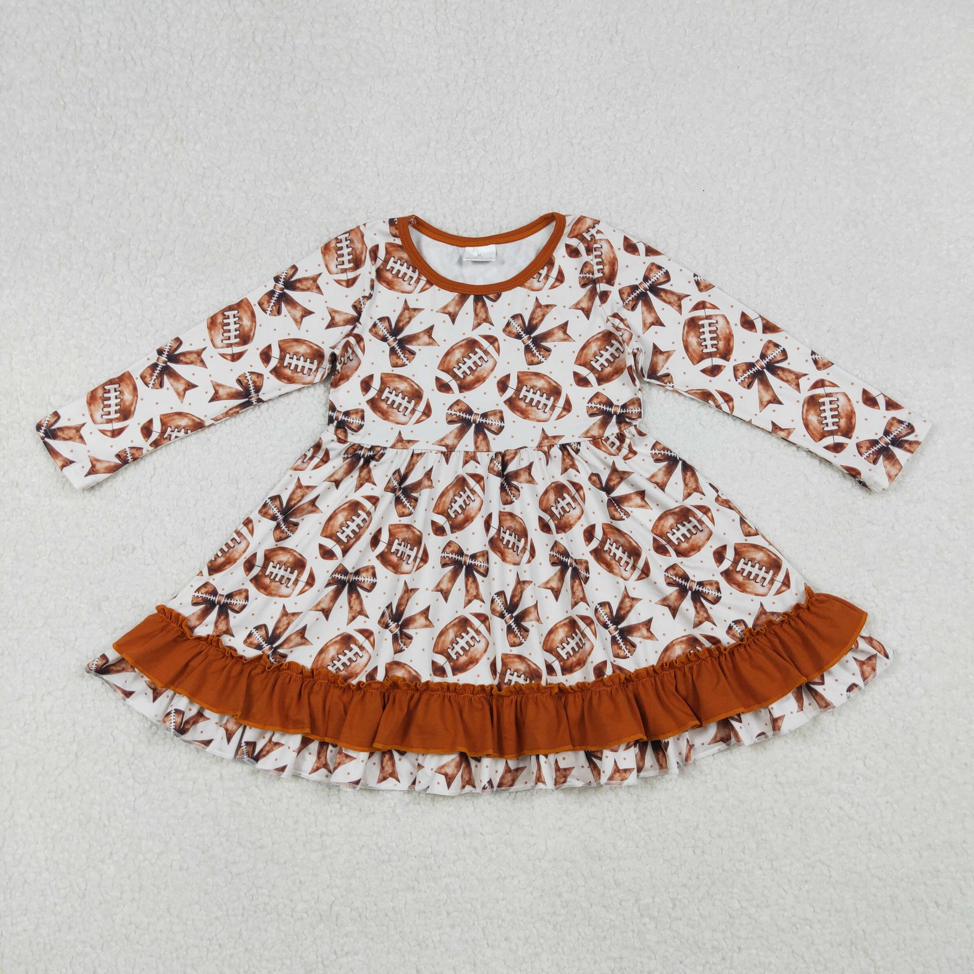 GLD1268 Baby Girls Footballs Bows Plaid Team Ruffle Knee Length Dress C9.29