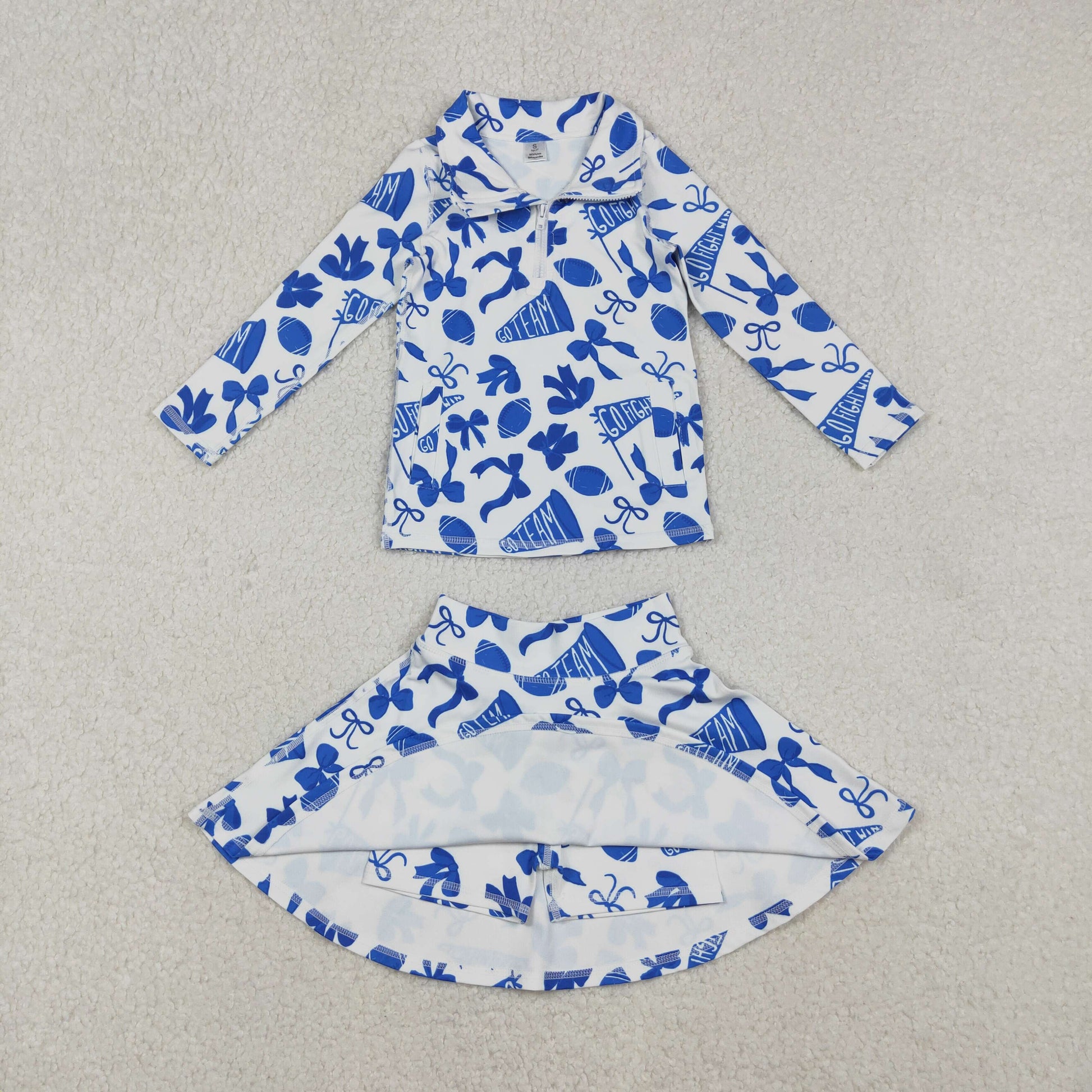 GLD1283 Baby Girls Hot Blue Bows Go Team Yoga Zipper Pullovers Skorts Clothes Set C10.25