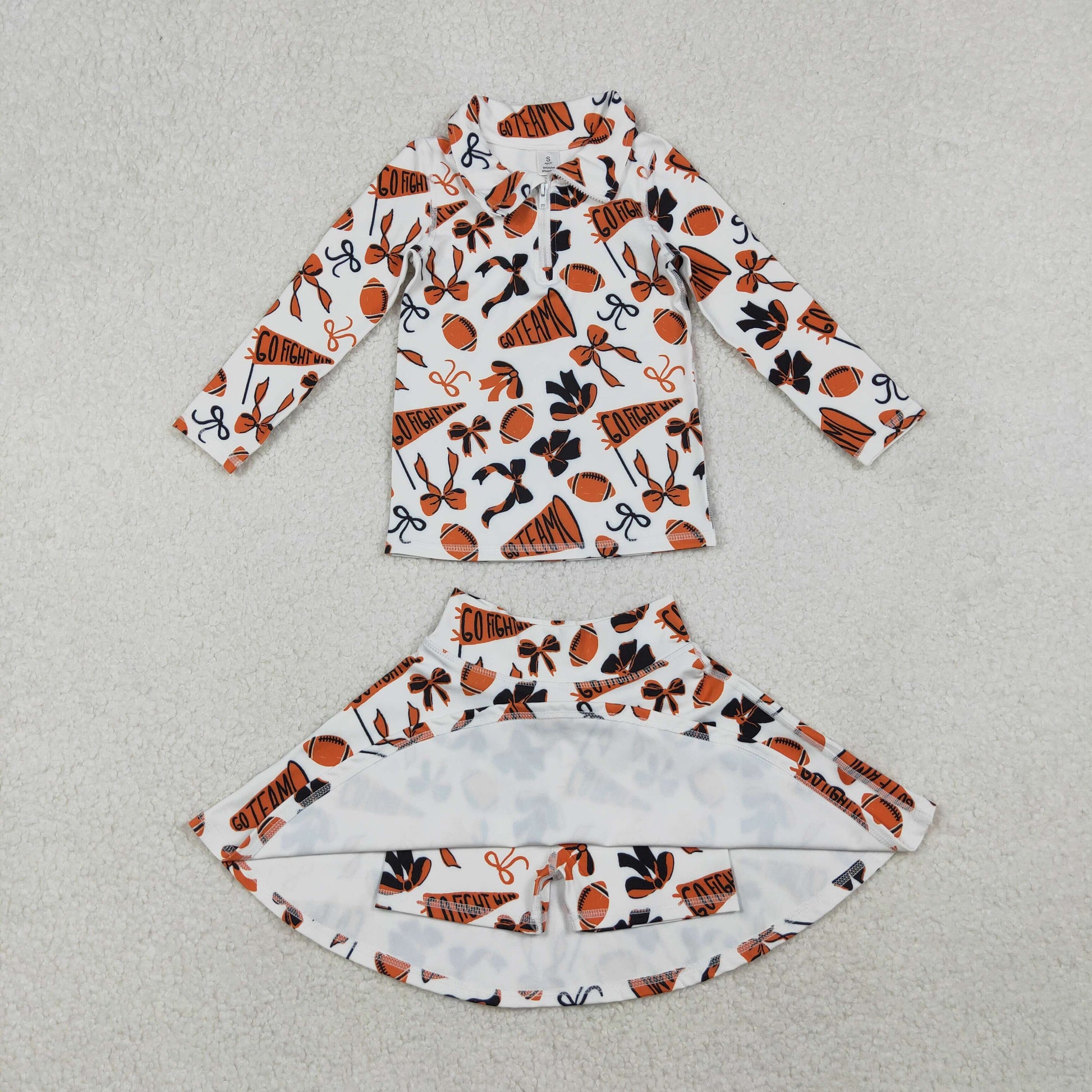 GLD1285 Baby Girls Orange Black Bows Go Team Yoga Zipper Pullovers Skorts Clothes Set C10.23