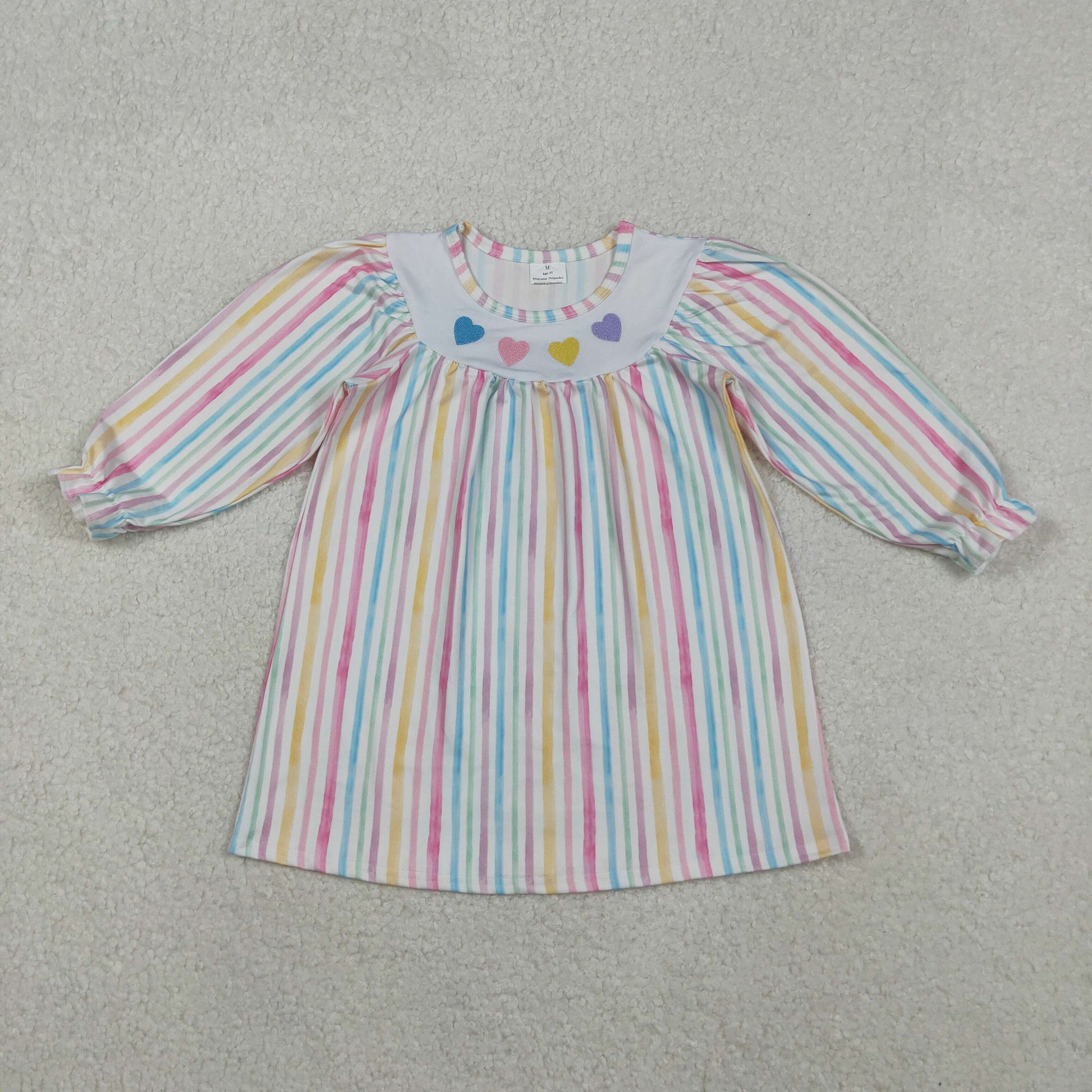 GLD1335 Embroidery Baby Girls Colorful Stripes Hearts Valentine Knee Length Dress C11.4