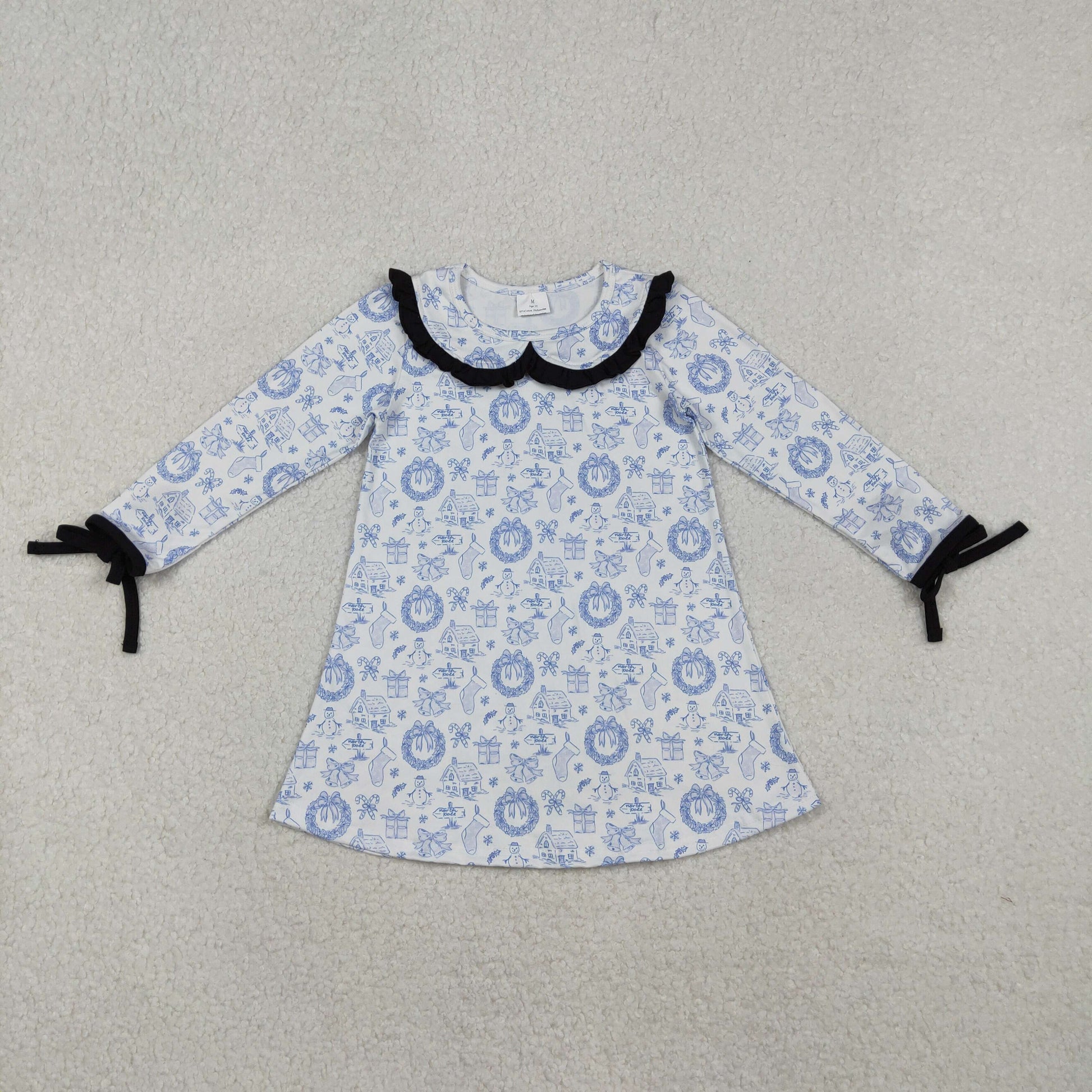 GLD1346 Baby Girls Blue Snowmen Holly Christmas Knee Length Dress C10.31