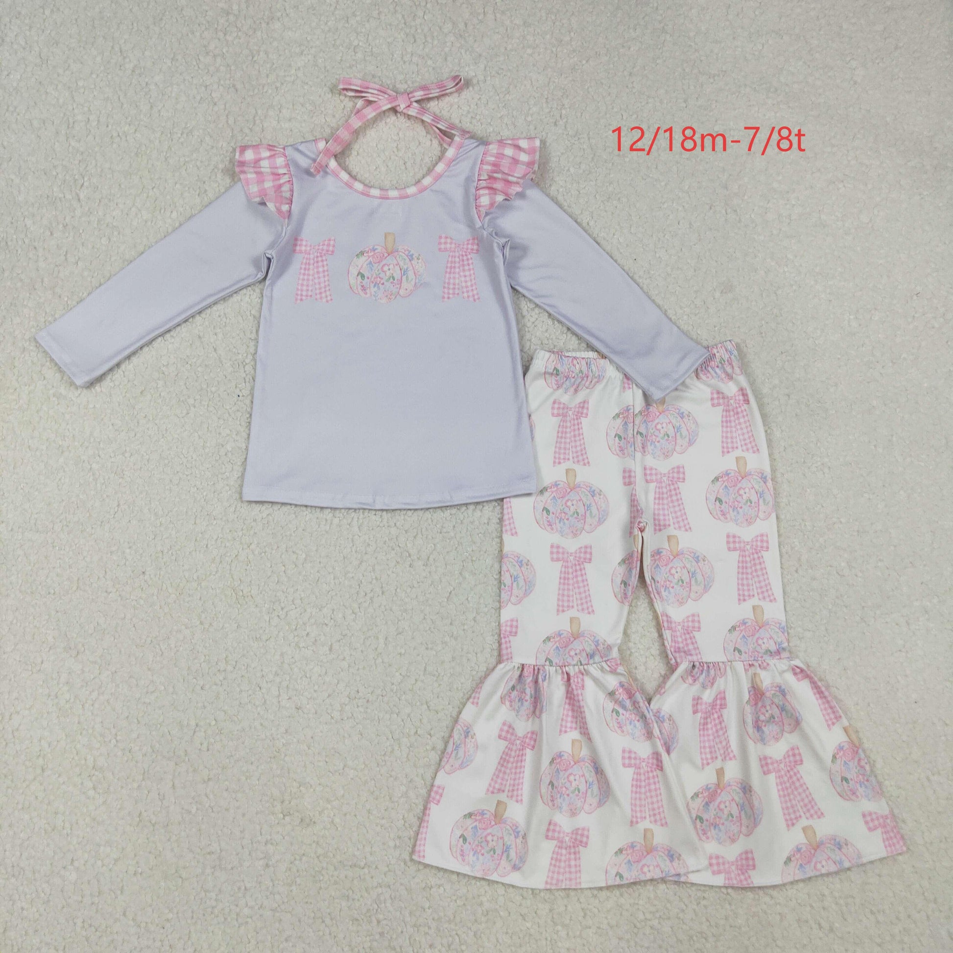 GLP2532 Baby Girls Long Sleeves Bows Pumpkins Tunic Bell Bottom Pant Set C10.8