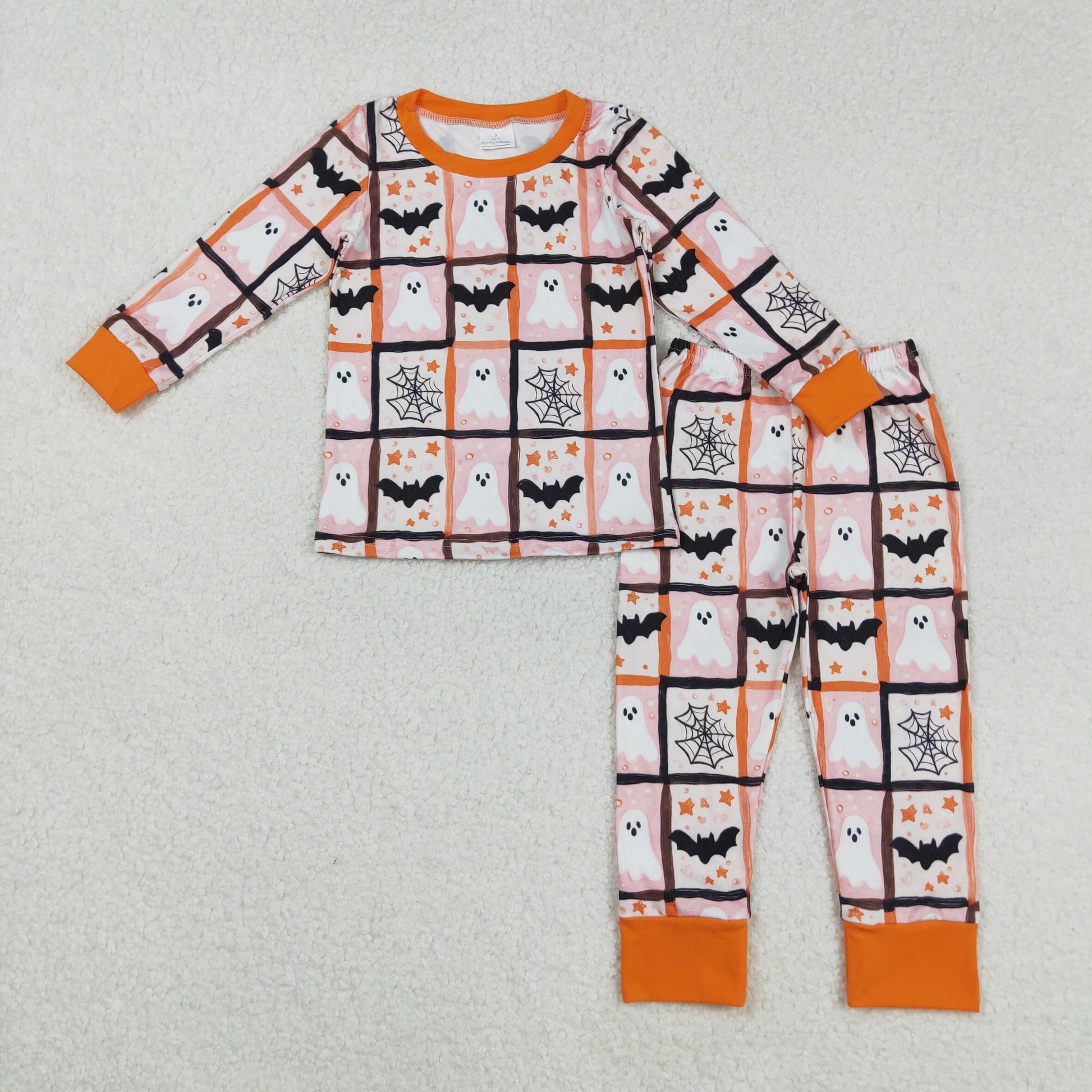 GLP2682 Baby Girls Ghosts Bats Plaid Top Pants Halloween Pajamas Set C8.25