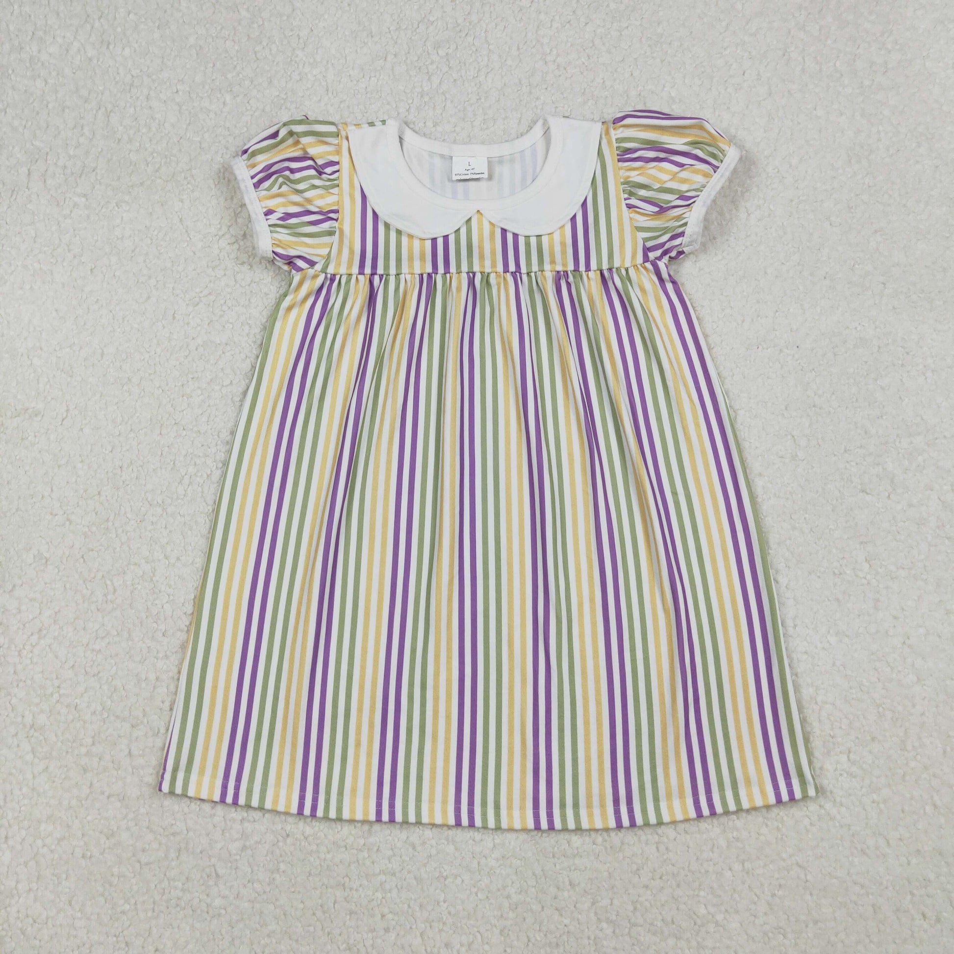 GSD1571 Baby Girls Mardi Gras Stripes Collar Knee Length Dress C9.29