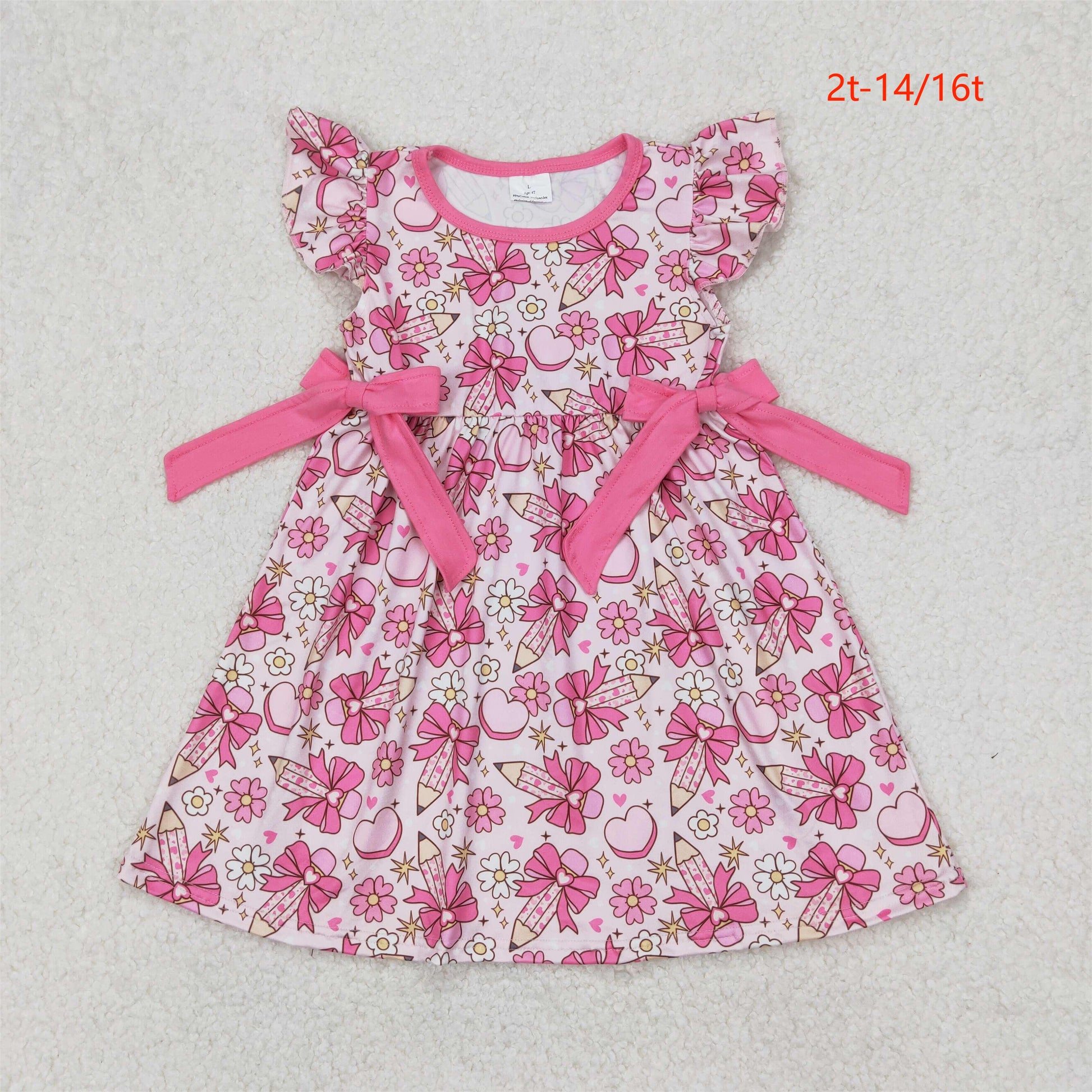 GSD1820 Baby Girls Pencile Bow Back To School Bows Knee Length Dress