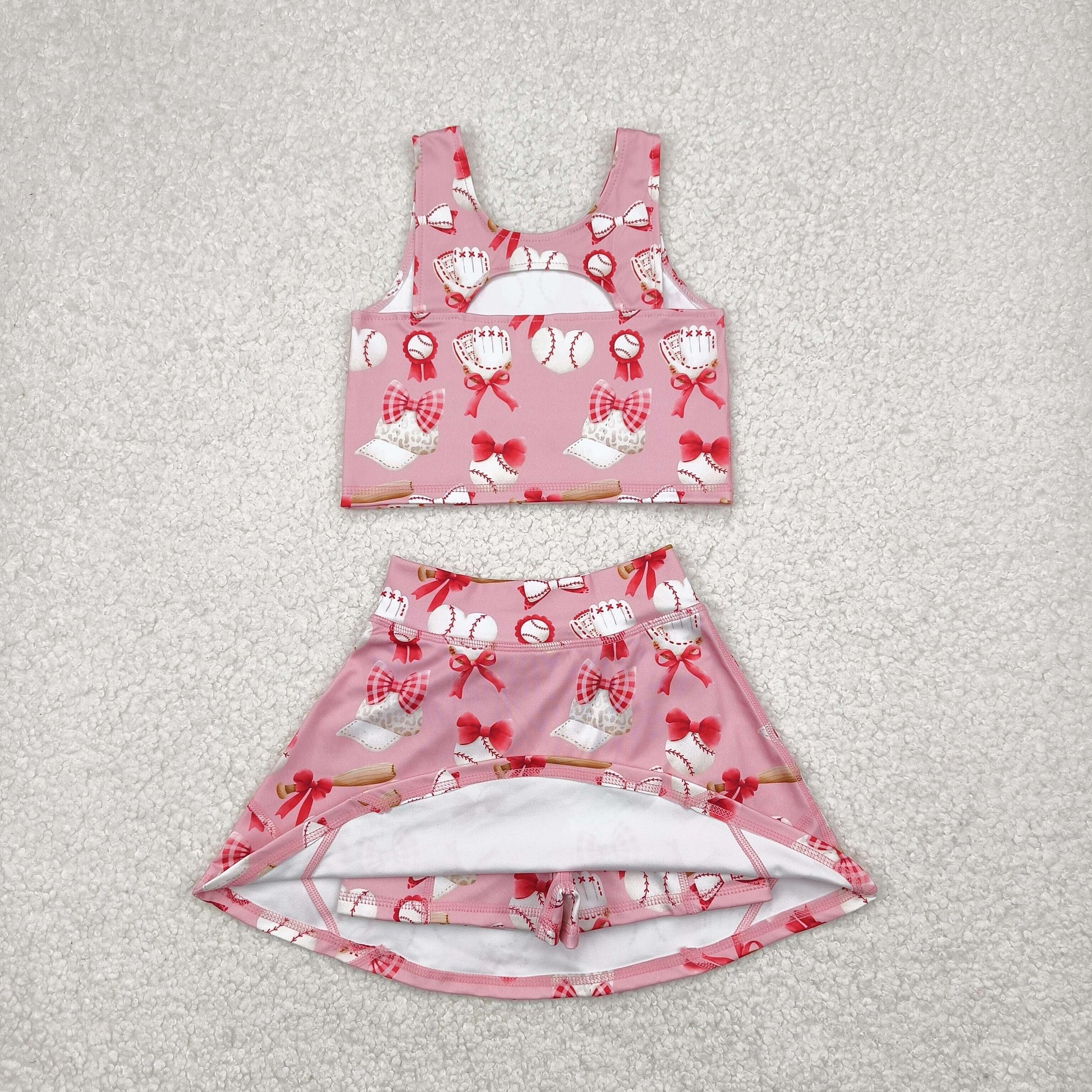 GSD2044 Baby Girls Baseball Bows Athletic Active Wear Top Shorts Skirts Clothes Set 4.18