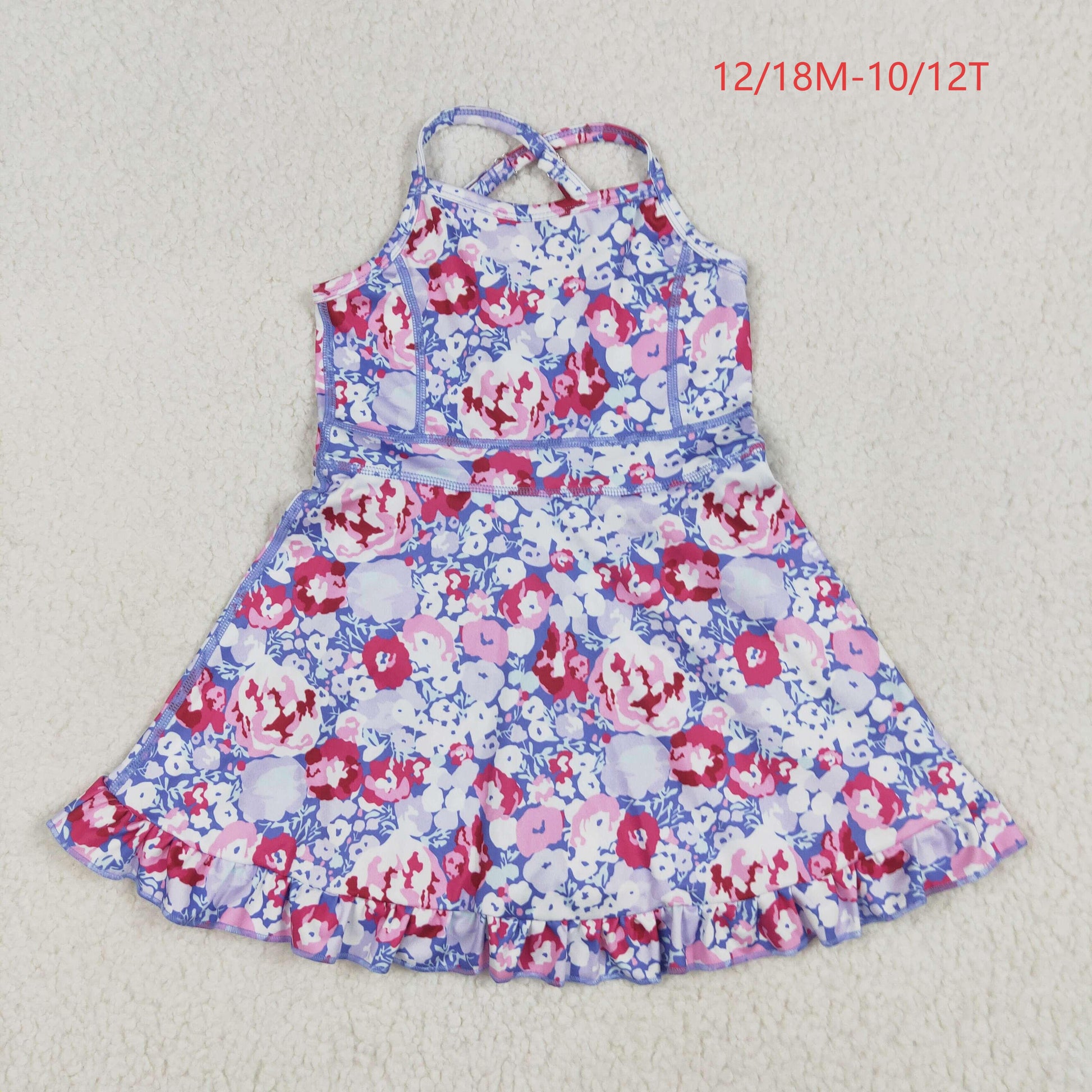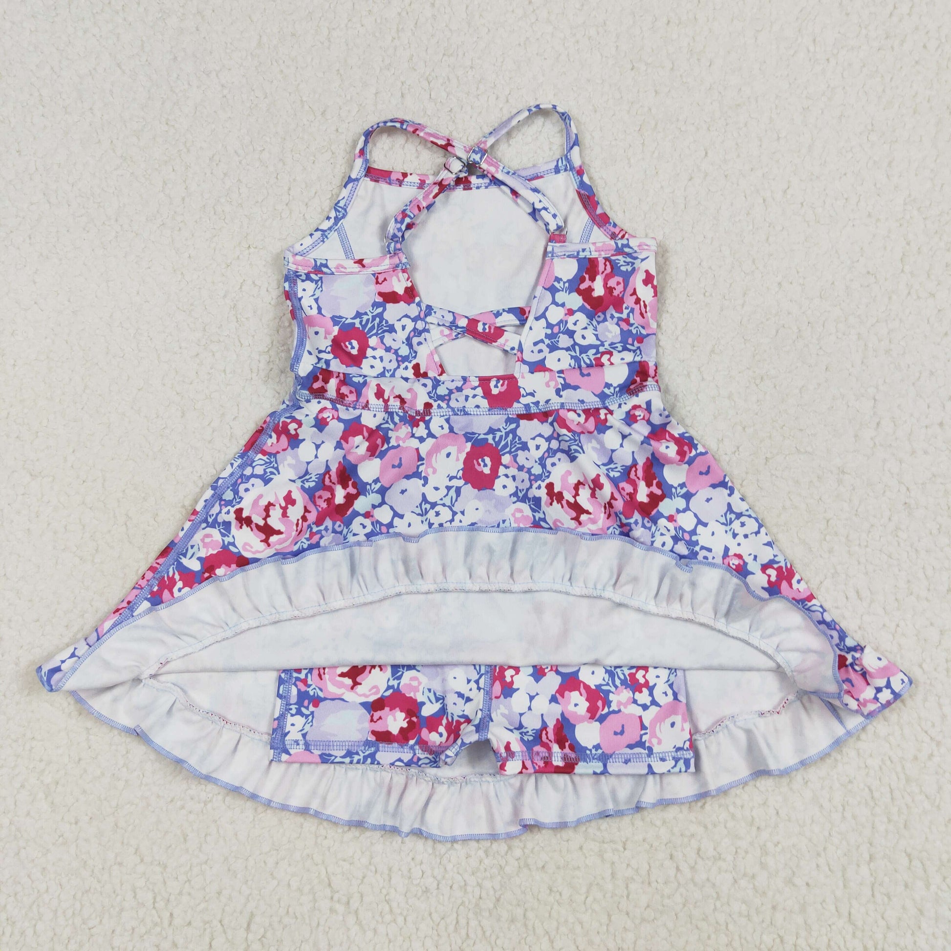 GSD2285 Baby Girls Lavender Strap Colorful Floral Yoga Ruffle Knee Length Dress 6.4