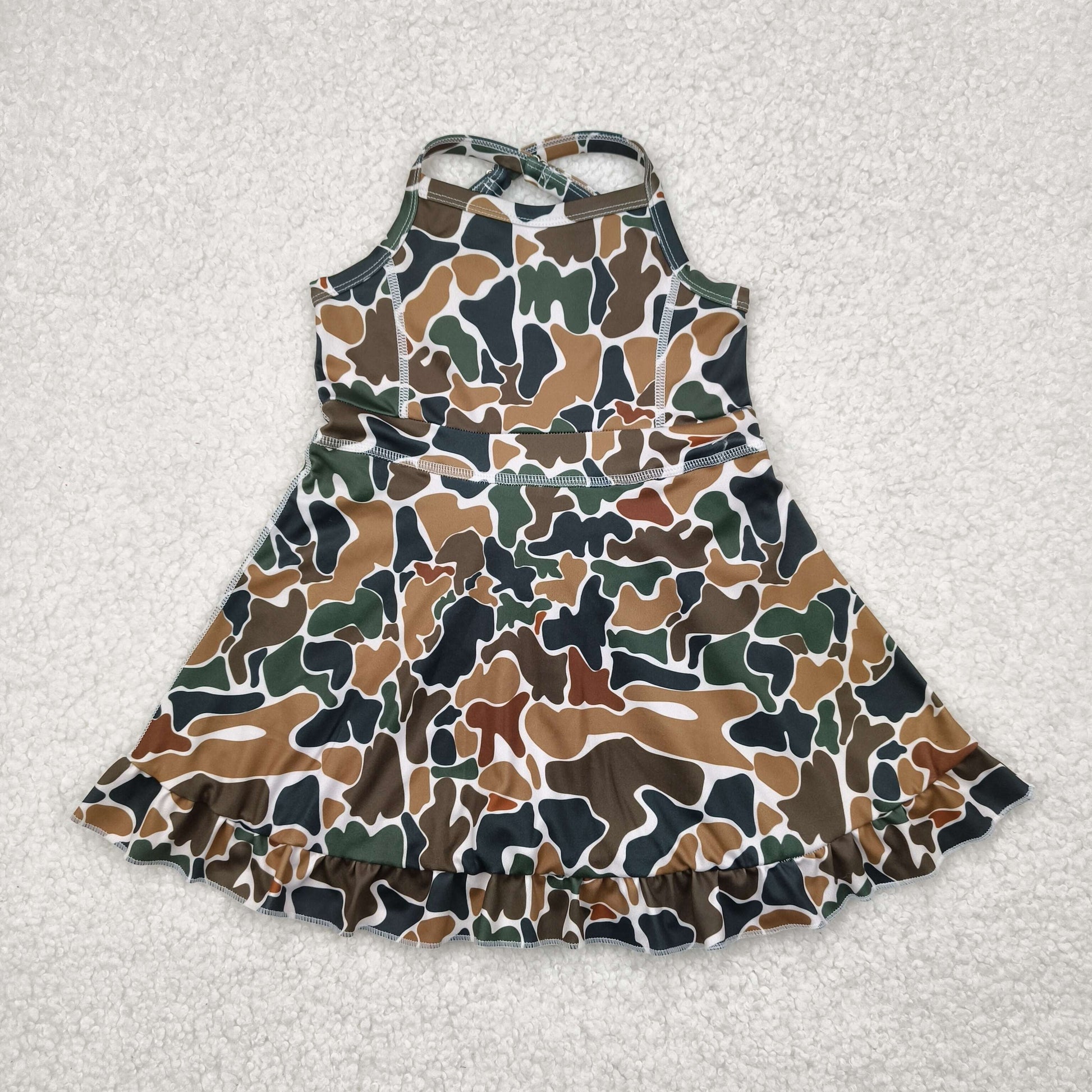 GSD2309 Baby Girls Strap Dark Brown Camo Yoga Ruffle Knee Length Dress 4.23