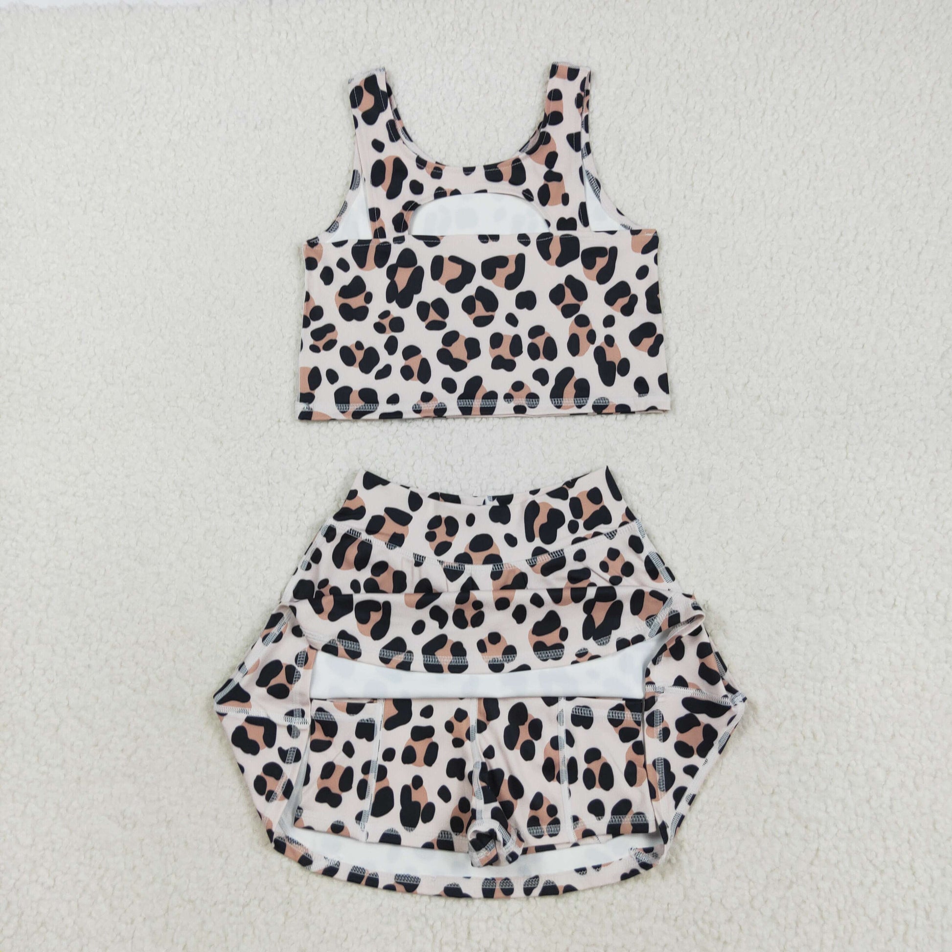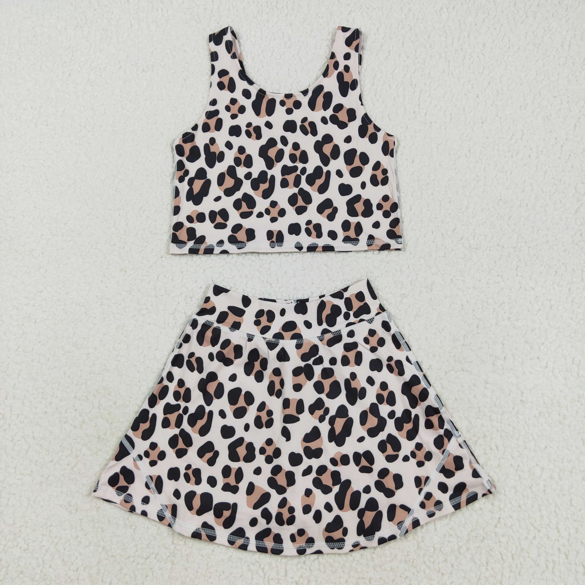 GSD2327 Baby Girls Sleeveless Leopard Top Skort Yoga Set C8.18