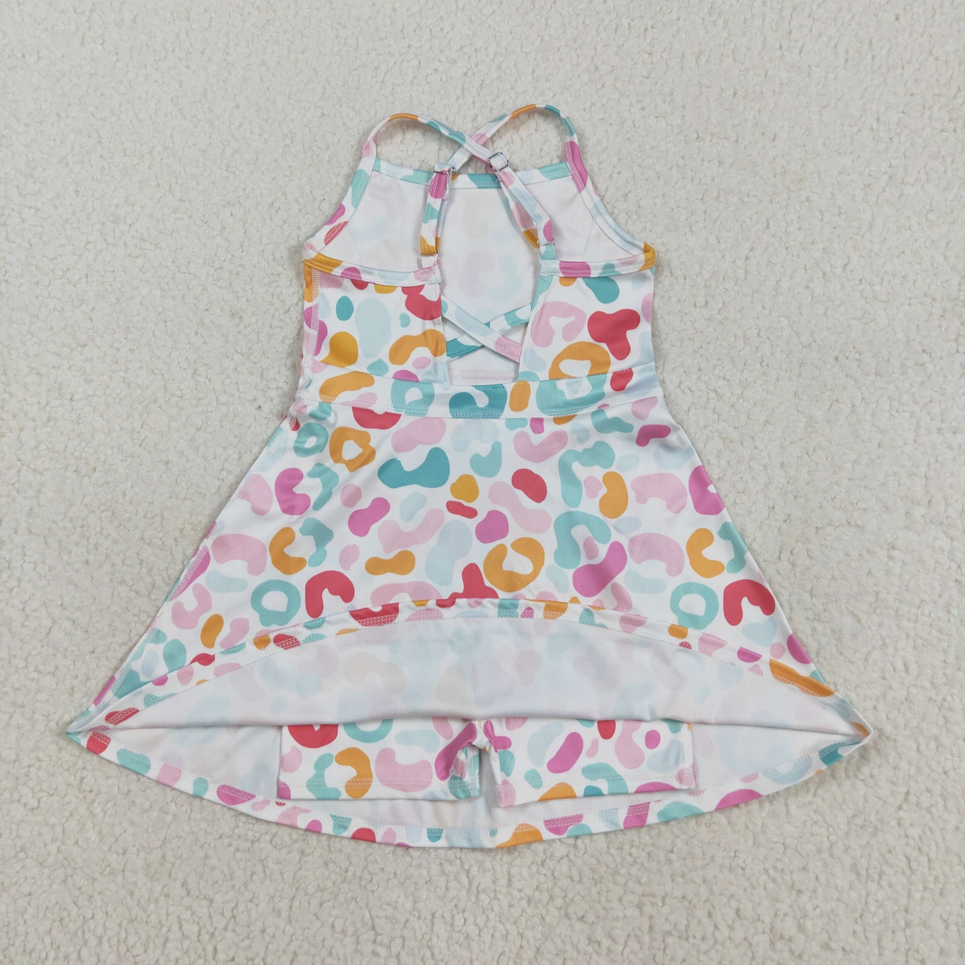 GSD2645 Baby Girls Strap Pink Green Leopard Shorts Knee Length Dress 8.5