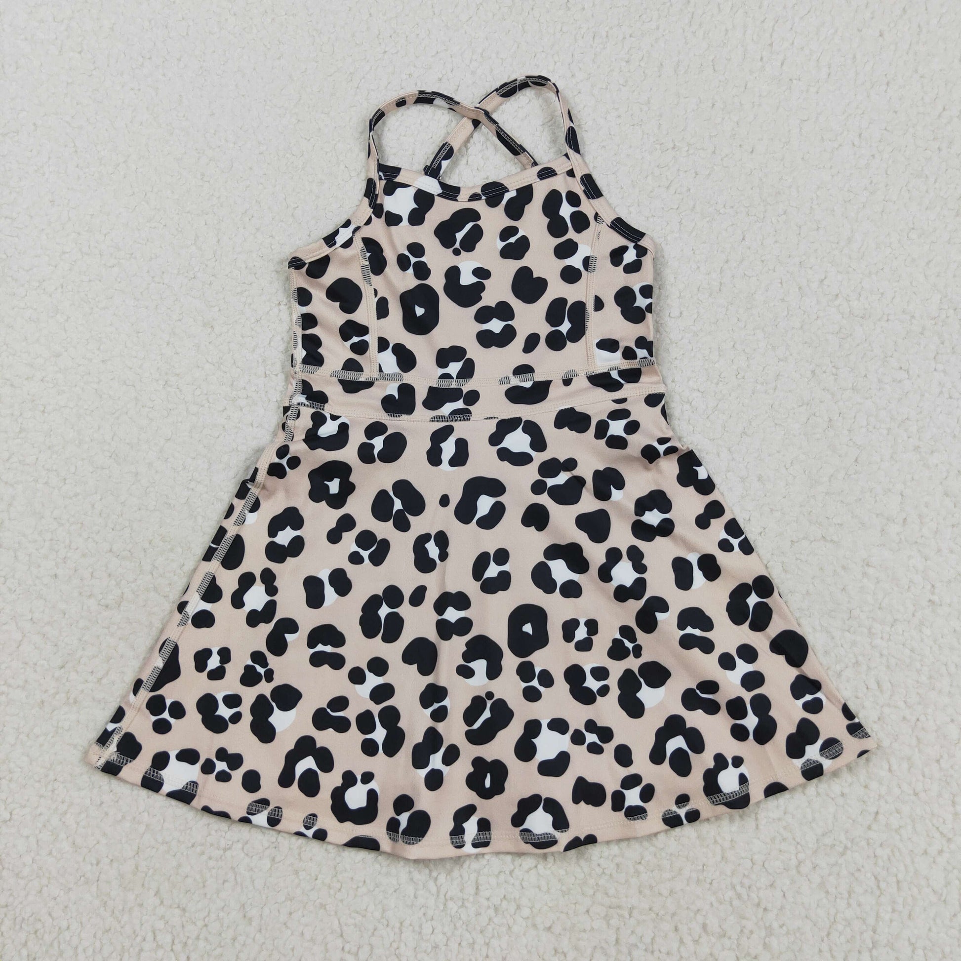 GSD2650 Baby Girls Strap Black Leopard Shorts Knee Length Dress C8.18