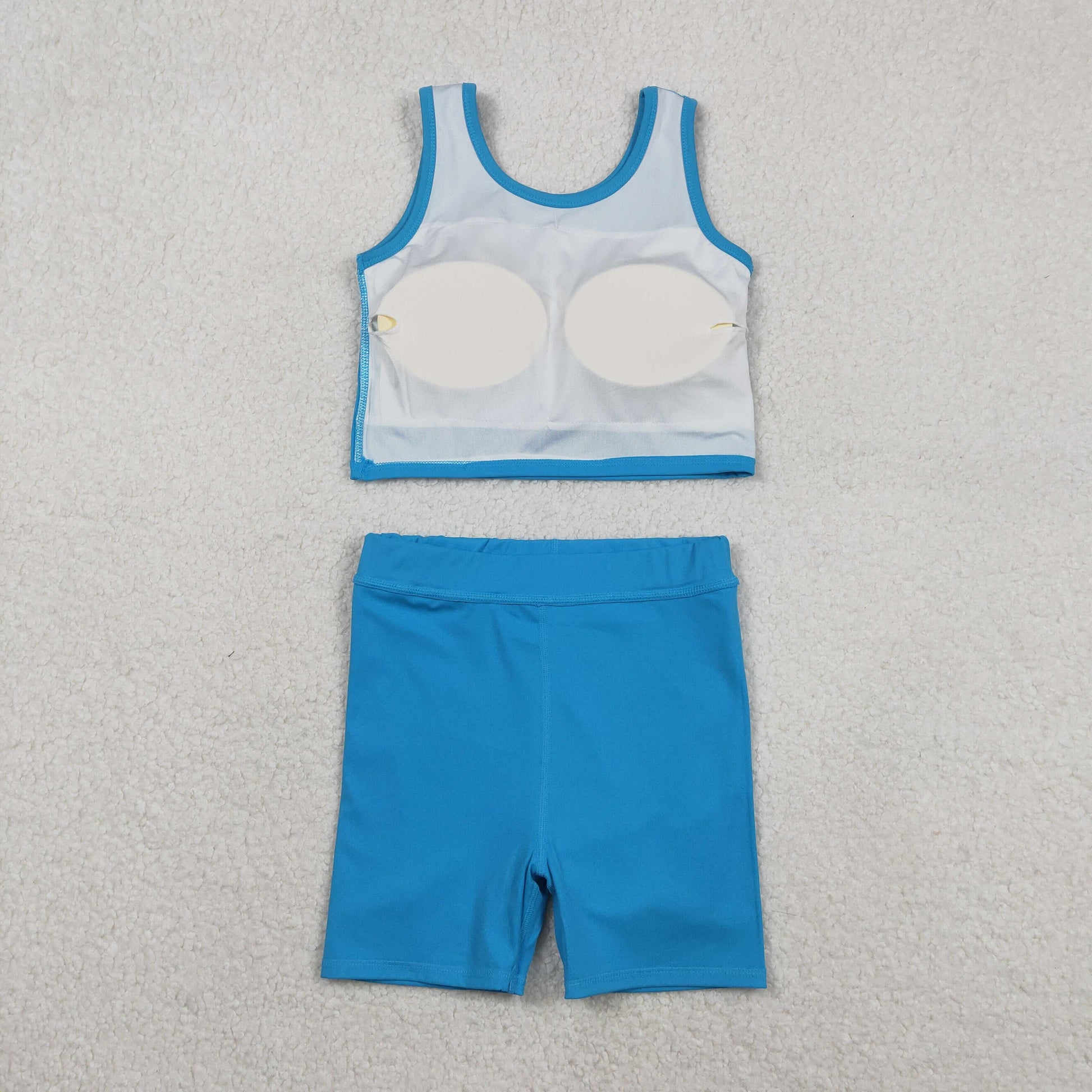 GSD2659 Baby Girls Sleeveless Hot Blue Vest Top Short Skirts Yoga Set C11.21