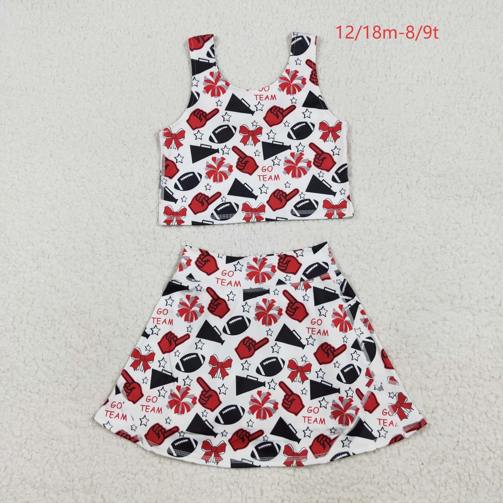 GSD2693 Baby Girls Team Red Football Bows Vest Top Short Skirts Yoga Set 7.14